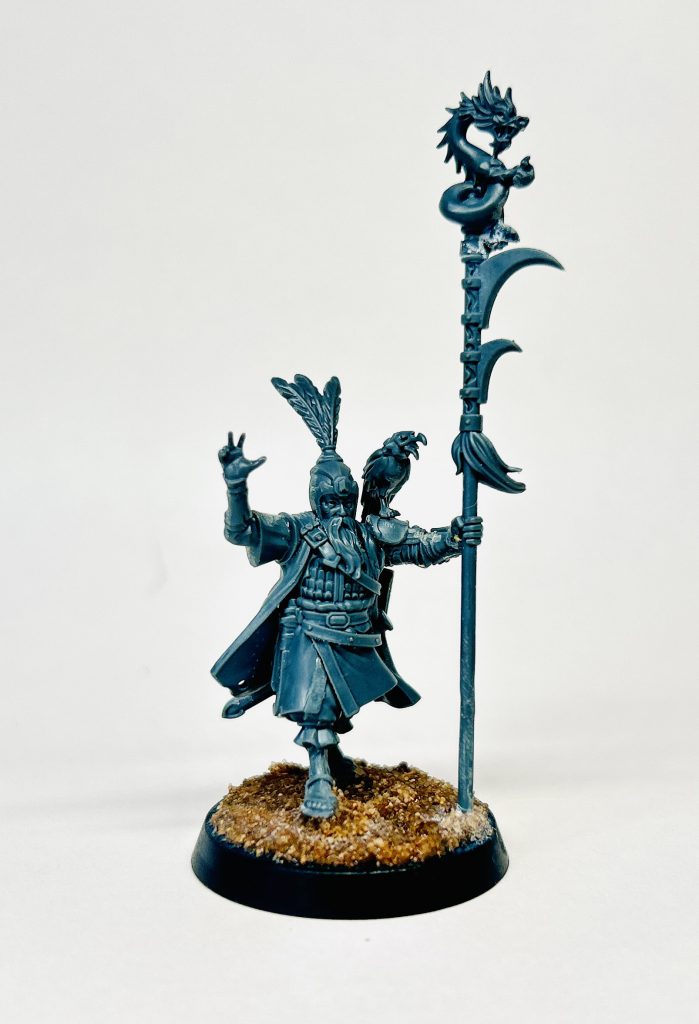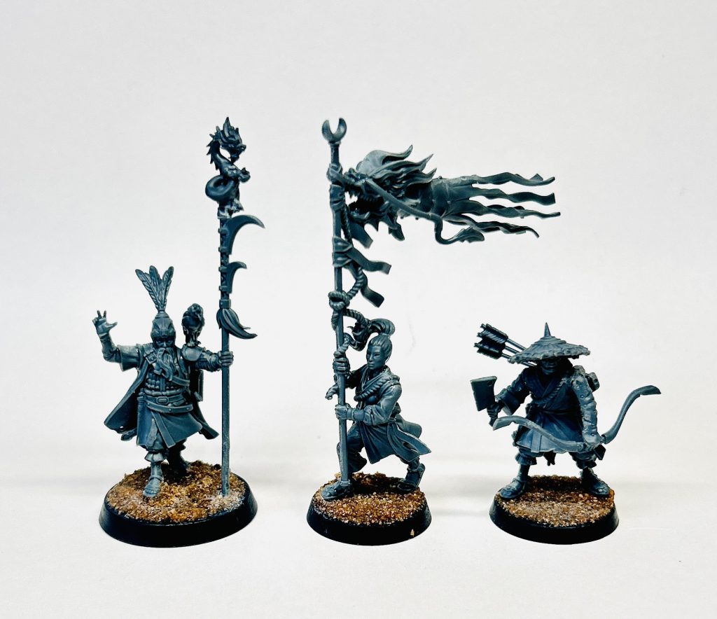 Kitbash wandering Ronin- @badusernametagAs with the Jade Warriors before I was disappointed to find only one pose for the champion here. The theme running through the OW ranges seems to be a lack of variety in command models and this is a shame in a game which promises massed hordes of infantry. There is some space to bash here though. Made mine into a (more humble than the Astromancers) Wizard. Dragon from gate masters kit tops his staff and a re-positioned bow drawing hand makes a fine ‘magic fingers’ right arm. Neat.