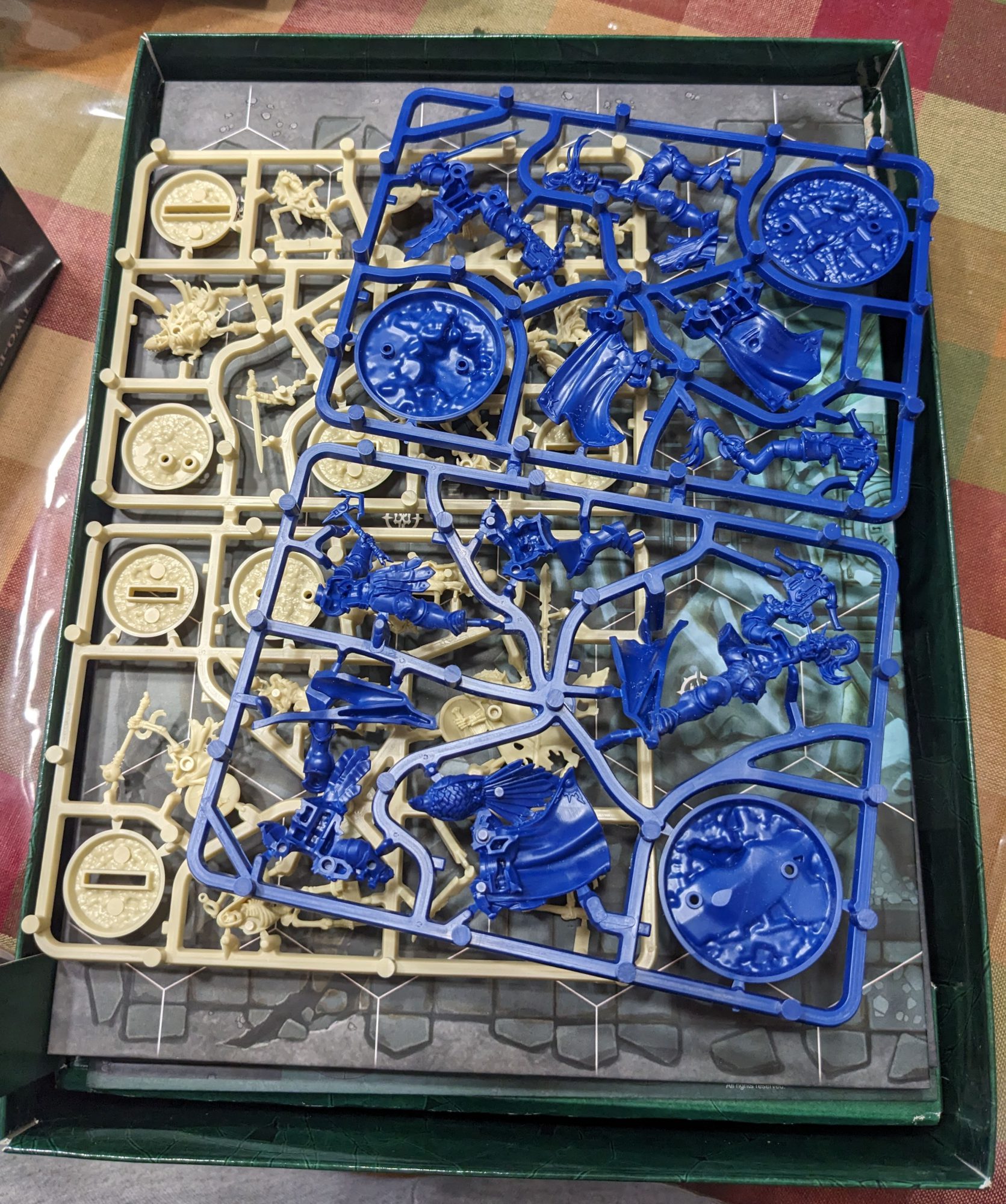 The minis sprues. Credit: Michael O "Mugginns"All that to say - this release includes Rivals decks for The Sepulchral Guard and The Farstriders. Some cards will be familiar to long-time WHU players, but there are new cards in each deck, and every card has newer art than the out-of-date original releases for these two warbands. From what I can tell, some of the fighter cards have changed too - for instance, the regular Prince of Dust seems to have gone up one damage on his Mace to two. That could be an errata from before but I can't find it anywhere as such.