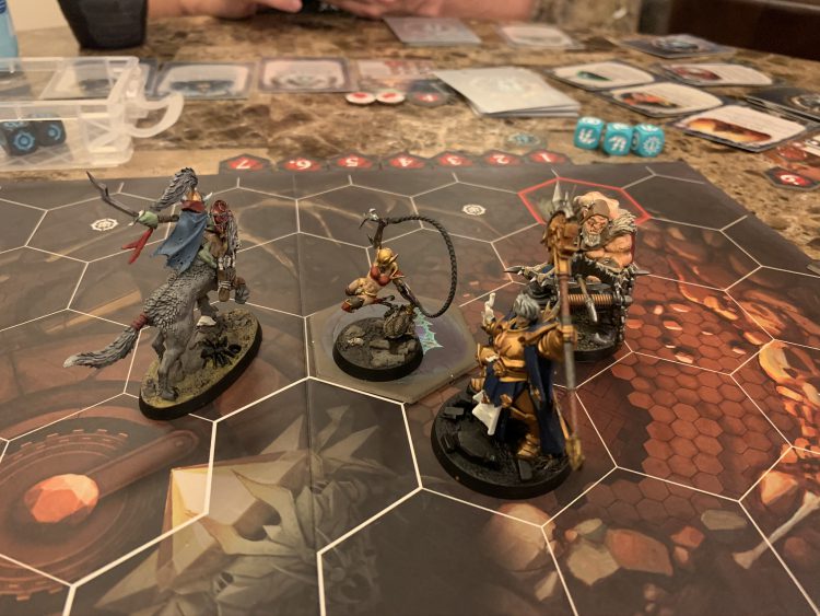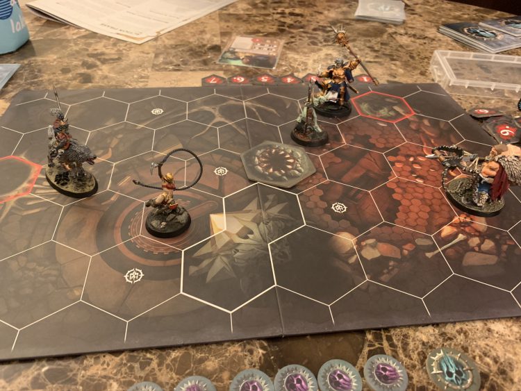 On its own, this is manageable. There are tricks. But the other catch with Mortis is that there is only 1 objective. All fighters are funneled towards the center objective where your various super-powers mean that you're often standing next to each other rolling dice back and forth. Yes, all of you are combining various powers to roll handfuls of dice at a time, but when everyone is so broken that nobody is broken the net effect can be a whole lot of nothing. In my Khamyss game, the objective I stood on also prevented me from being the target of gambits. I was the rock and the hard place, the immovable object (she can't be driven back) and the unstoppable force.