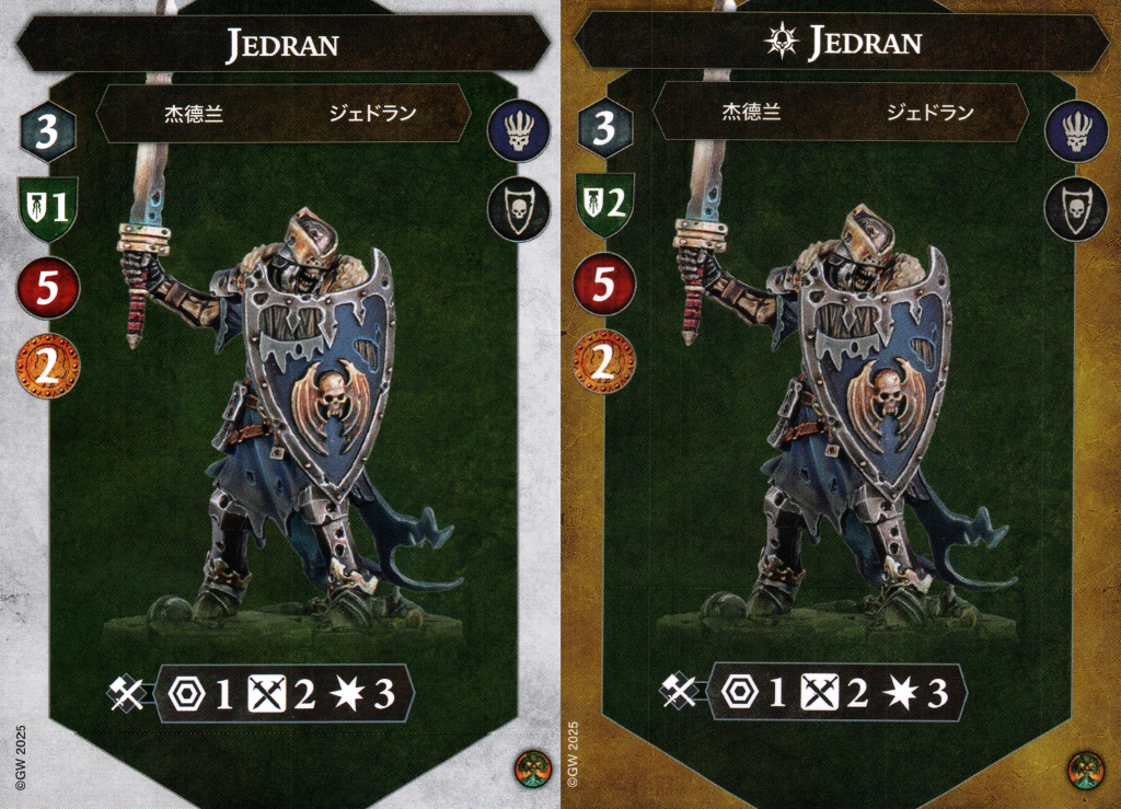 Jedran's a beast with 5 health. He, like his dad, goes from 1 shield to 2 once inspired so picking that inspire up is highly valuable. He does sport the bulwark icon, so he can pick up free guard tokens from the occasional critical result on a save dice. Neat.