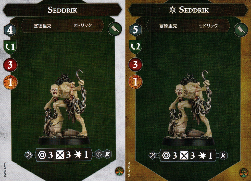 Seddrik is the final fighter in the warband and the only one with a ranged attack. Seddrik's defensive profile is a mirror of Pewdrig's, which means it isn't very impressive. The three non-chefs in this warband really do want to inspire ASAP so they can pick up that extra save dice.