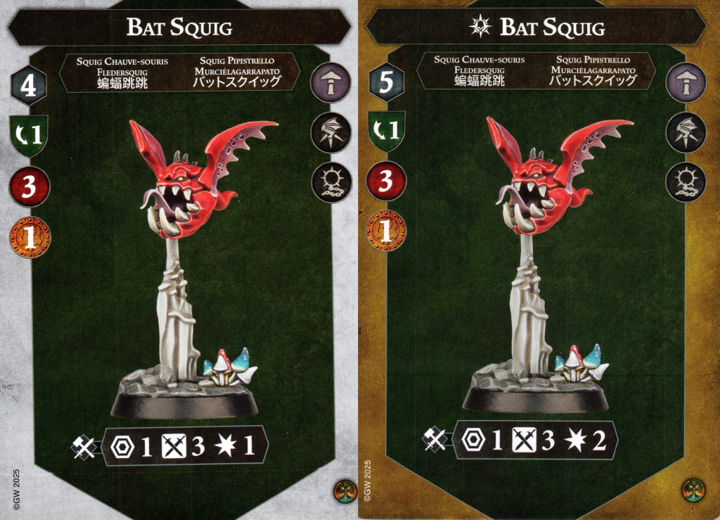 They share the same attack profile as Drizgit, rounding out the warband's 2 damage fighters. As squigs and not grots, they won't contribute to making Gang Up more accurate but they are still able to take advantage of it to boost their own accuracy if you so wish.