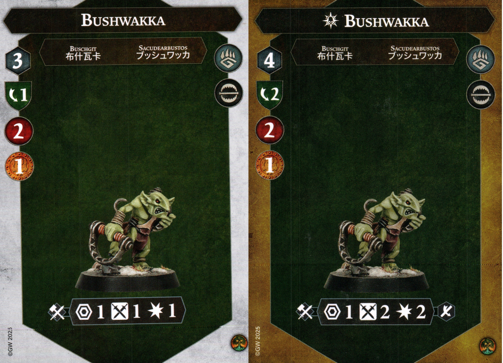 The existence of this warband in this state is actively bad for the game because they are basically the best at everything. Trying to make an aggro deck? Take the warband with five fighters starting on 2+ damage and five fighters with ranged attacks. Trying to make a feature token based deck? Take the warband with 9 fighters who have solid action economy with Slippery Gitz. Need something to counter an aggressive strategy? They have 21 total health (the largest in the game) and now explode when they die to inflict at least 7 guaranteed damage into enemy range 1 attackers.