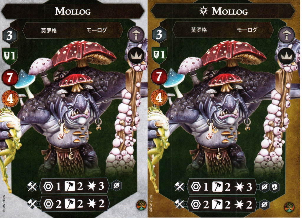 Defensive cards to keep Mollog around longer can frustrate opponents who are trying to take him out quick. Heals, increases or re-rolls for saves, and damage reduction can combine to keep him around long enough for the end-of-round healing to also kick in. It isn't impossible for an enemy warband to deal 7 damage in a turn, but it's much more difficult to deal 8 or 9 despite not being much further off.