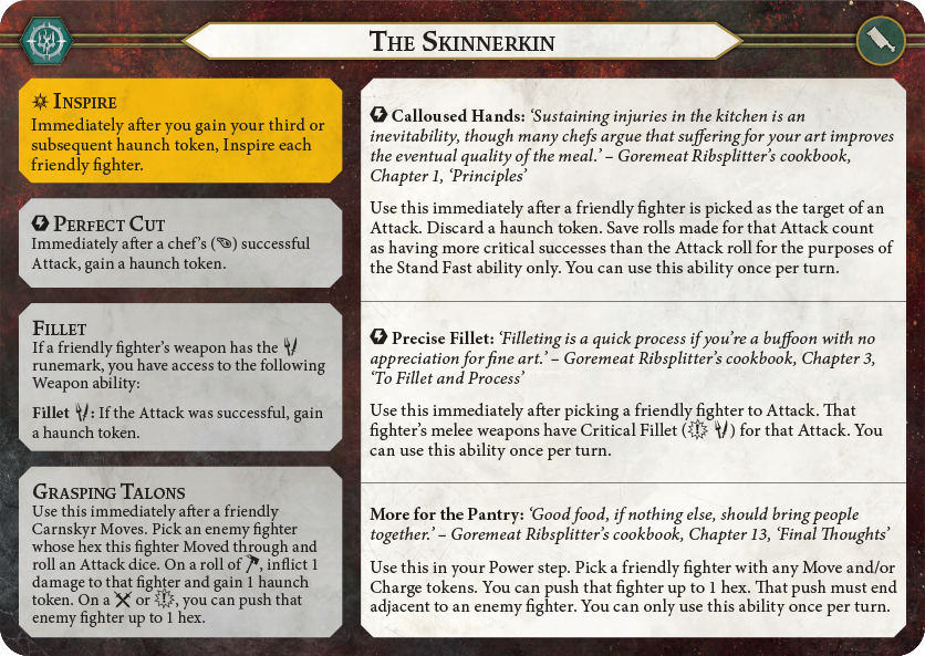 Credit: Games WorkshopI am grateful that not only does this warband revisit the mechanic of haunch token, which is so much fun to say, but they also get runemarks! There’s a little ham slice (yes, it’s definitely ham and don’t let anyone tell you otherwise) and a fork-and-knife icon. How adorable.