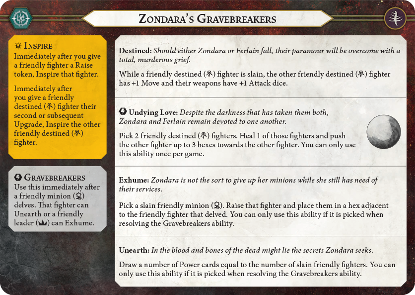 Credit: Games WorkshopZondara and Ferlain, the warband’s two destined fighters, have their own inspire mechanic while their undead minions have a separate one. A destined fighter will inspire immediately after the other destined fighter has been given their second of subsequent upgrade. Cracktomb, Toyle, and Pikk will each inspire once they have been given a raise token. Pretty clear here, and gives you goals to work towards.