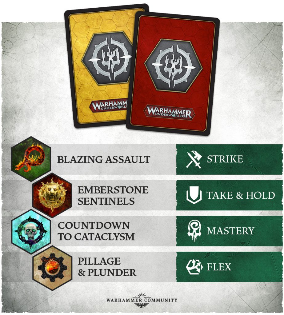 I think it’s important to clarify that the different play styles (Strike, Take and Hold, Flex, and Mastery) are all just labels. There’s nothing restricting you to taking decks that match your warband or match each other. Go hog wild. Mix and match to your heart’s content.