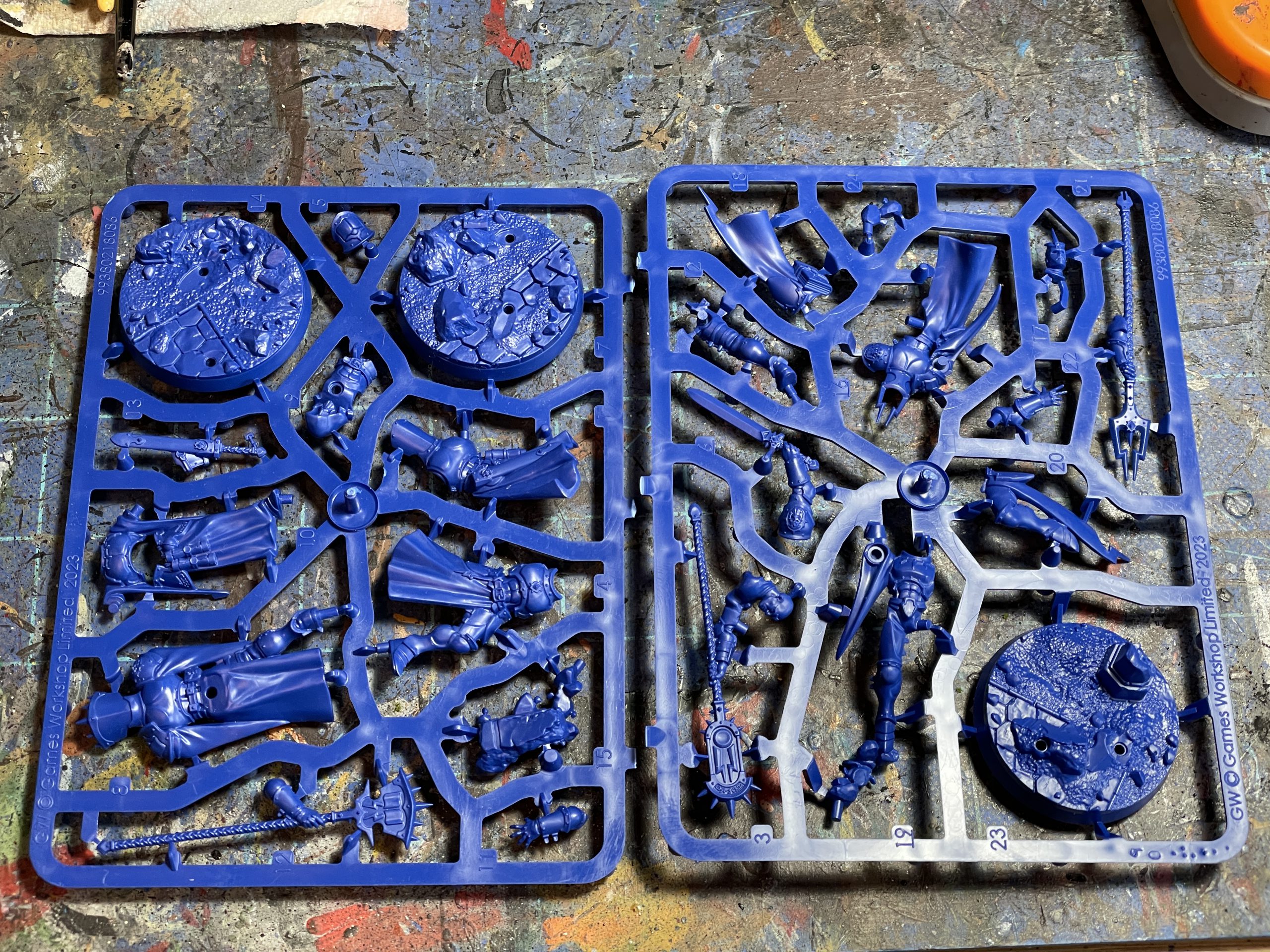 Domitan’s Stormcoven SprueAs is typical of Underworlds warbands, you can build this trio without glue. The thought of that gives me agida and I crave the fumes of plastic cement, so I went ahead and glued them together anyway. While the pegs that let these models snap together are better than they used to be, it's still a good habit to trim these down a smidge to stamp out any potential gaps along the joins. There are 24 bits in total here, and the mold lines are about as tight as you'd expect on a modern kit. The assembly doesn't do much to hide them and there's one that frustratingly goes down the middle of Sarpon's unhelmeted face, which is one of my least favorite places for a moldline to be. He is otherwise simple to assemble, and has one big seam where the two halves of his robe join that will need thicker plastic glue, sprue goo, or other gap filler to completely hide. I also recommend the goblin-esque move of slathering on some slightly thick paint after the fact to help fill the gaps.