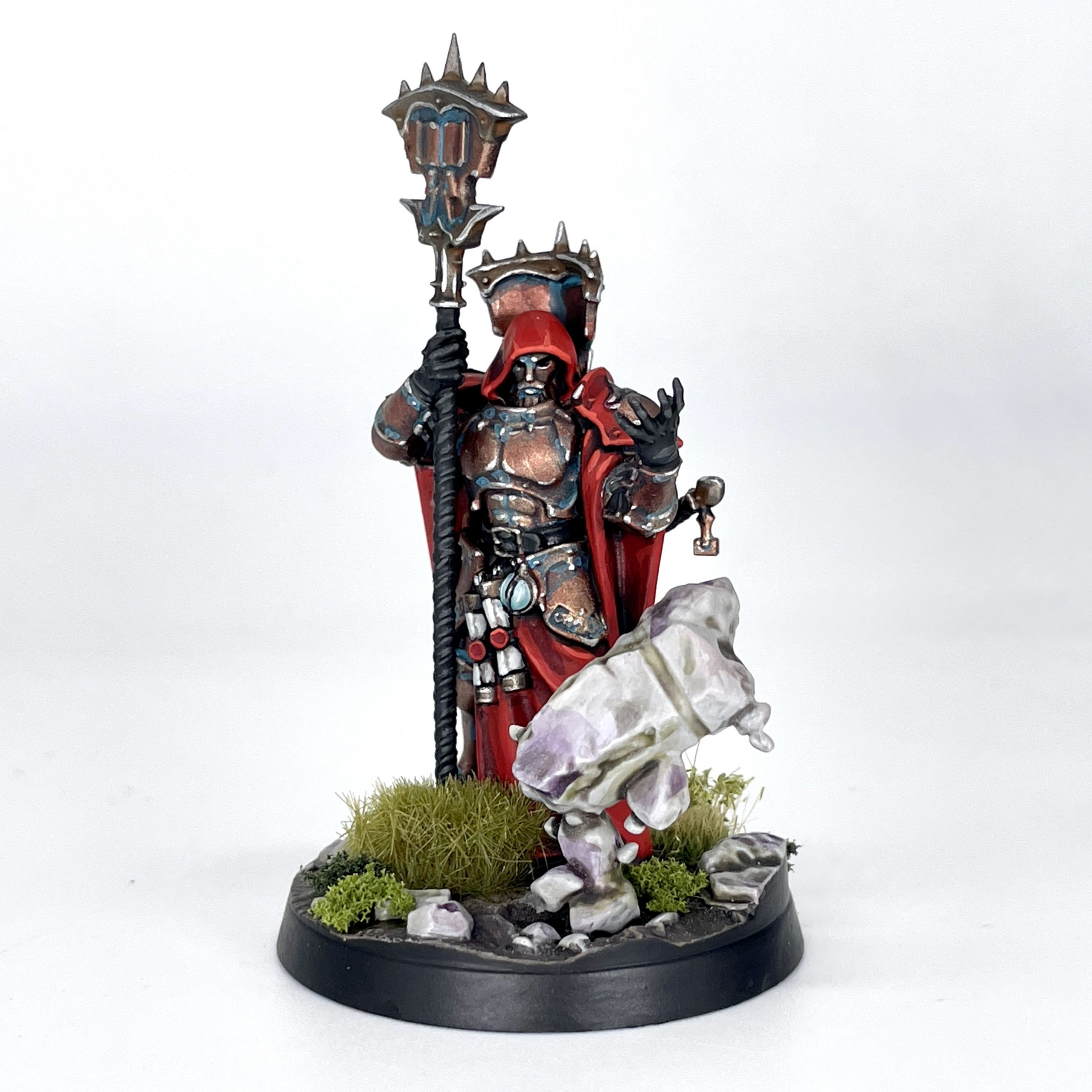 Domitan, Eye of the Storm. Credit: SRMThere are a few wrinkles here that might trip painters up, which should be familiar to Stormcast collectors. First, their bases are rather detailed, and while it's all pretty easy to wash and drybrush away, it would behoove a painter to either paint the miniatures separately from their bases or tackle the messy business of drybrushing beforehand. Personally, I just jammed a bunch of foliage on there to cover up any boring bits or messy overbrushing. There are also a few tough to reach spots on the legs of the models as they are often hidden by cloaks from certain angles, and it will require some careful brushwork to get inside and hit those details. Lastly, some attention needs to be paid to the arms and legs of these models, as they aren't quite as armored as many Stormcast. If you've painted Vigilors before you'll more or less know the story here, but you don't want to paint cloth like it's platemail or vice versa.