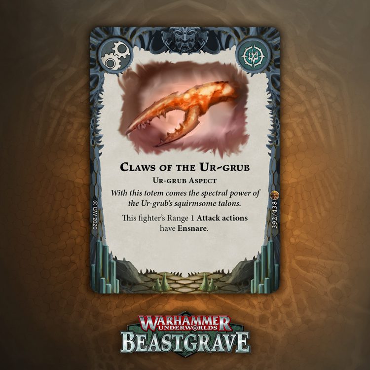 Ensnare is really, really strong… sometimes. A lot of Dodge warbands rely on two or three dice defense stats, and this cuts the effectiveness of those rolls by quite a bit, and makes killing one dice chumps a breeze. Against Shield warbands, it’s still good if they go on Guard or use Substance Siphon. However, it doesn’t work with Range 2 or higher, and doesn’t provide damage or dice boosts, which are often more important. If you think you expect to see a lot of two or three Dodge fighters, it’s a solid inclusion, but if you’re going against a lot of Stormcast, Nurgle, Hrothgorn, etc, it loses some luster.