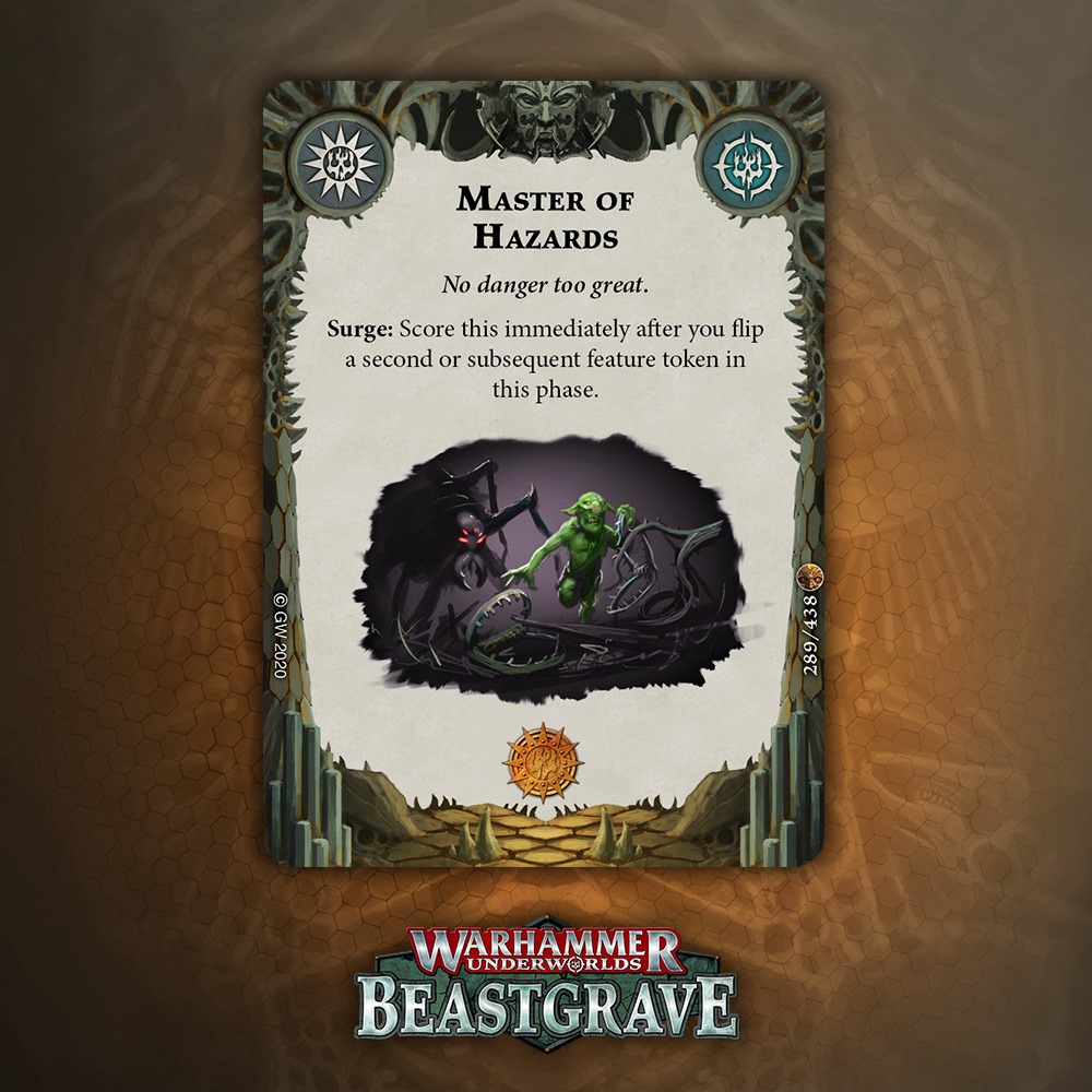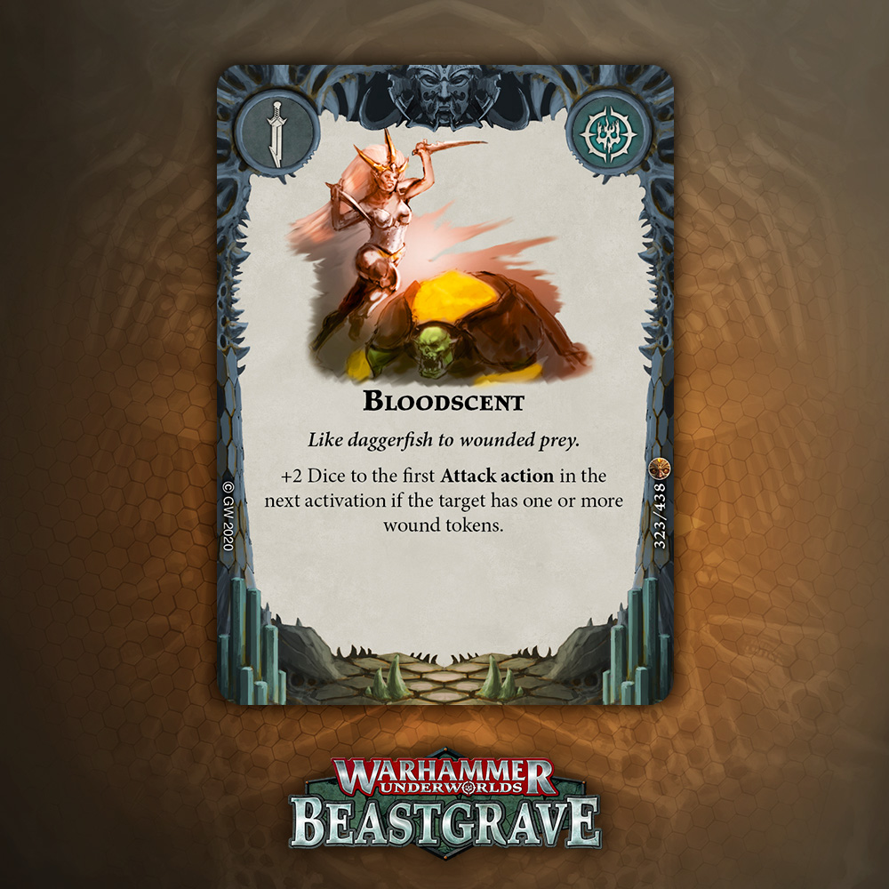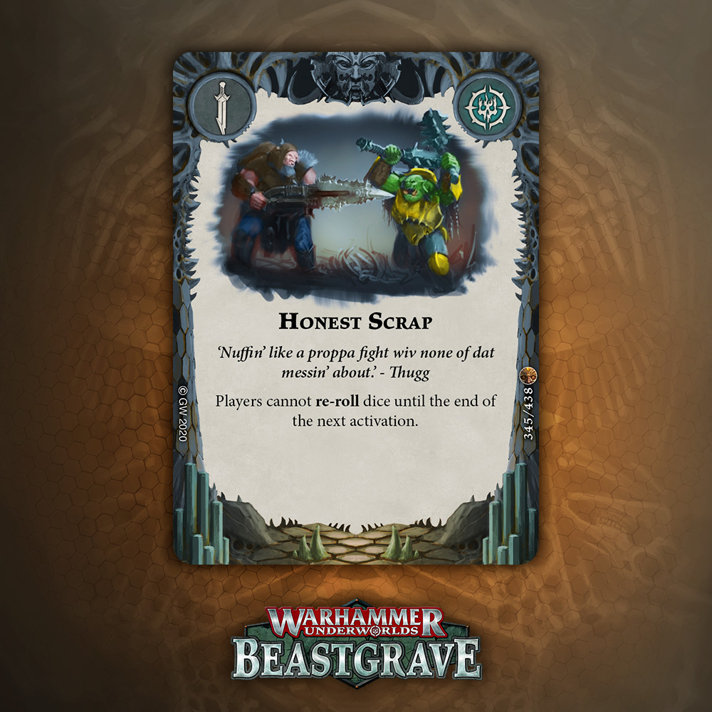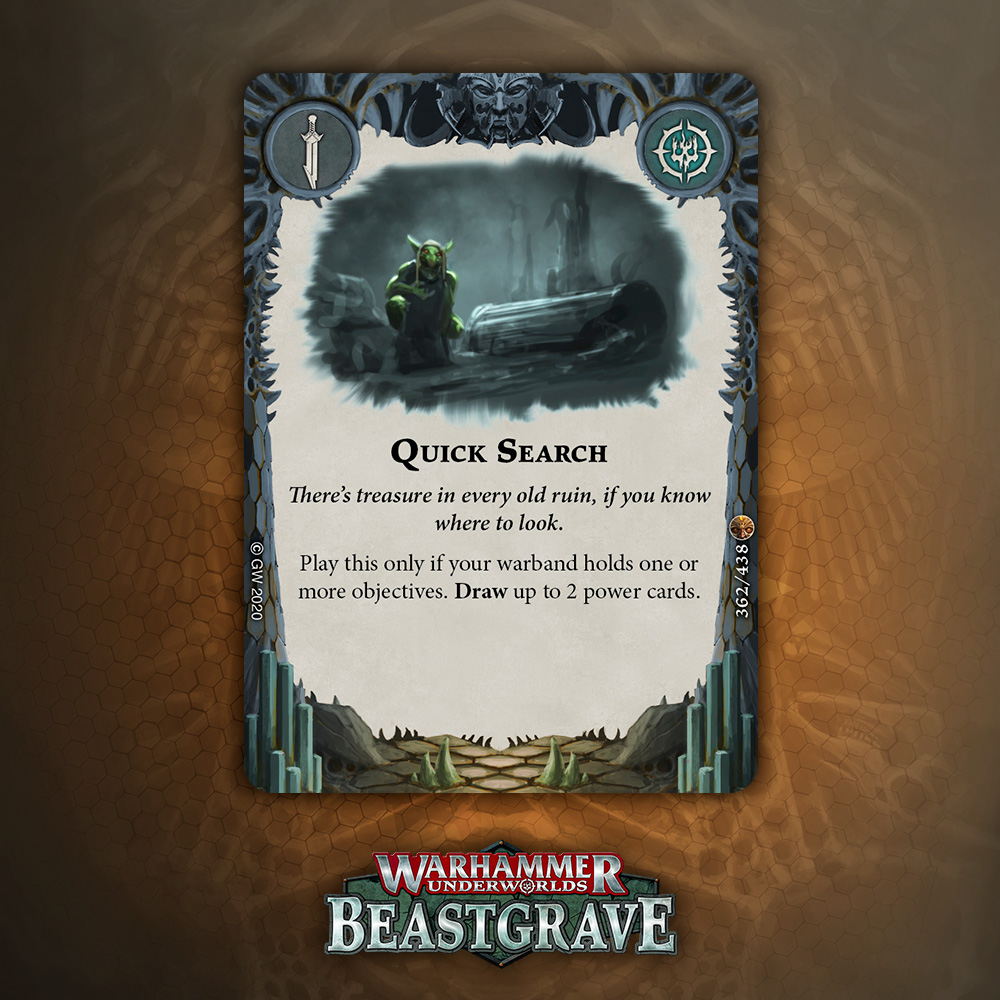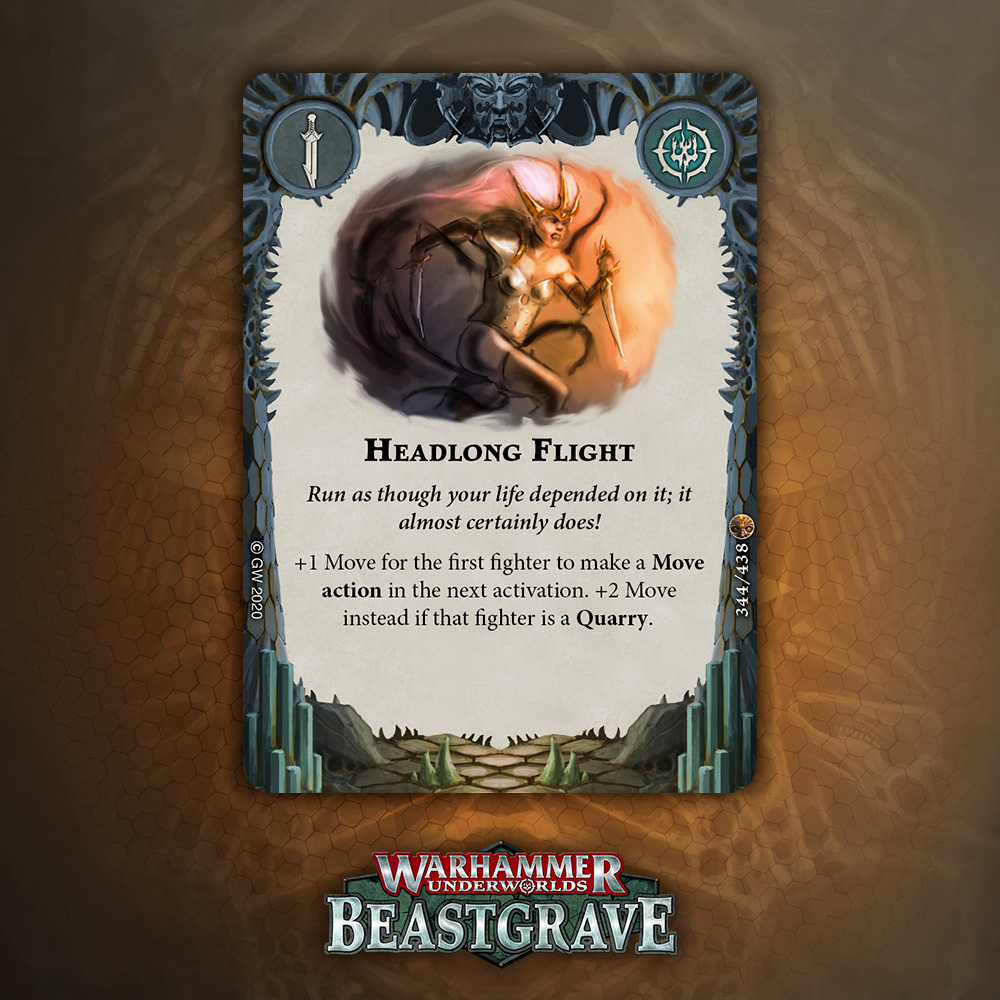 Cleave is great, but is it worth an Upgrade slot that doesn’t boost damage or precision? Arguably Cleave is technically precision, except it’s not against Dodge warbands, and does nothing if you miss the dice. I think there are better Quarry cards, but I would consider this if my meta was full of Morgok, Stormcast, Wyrmspat, and the like.