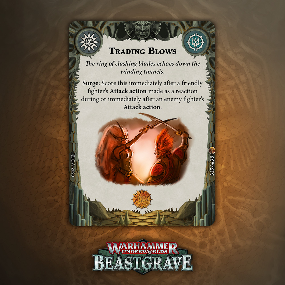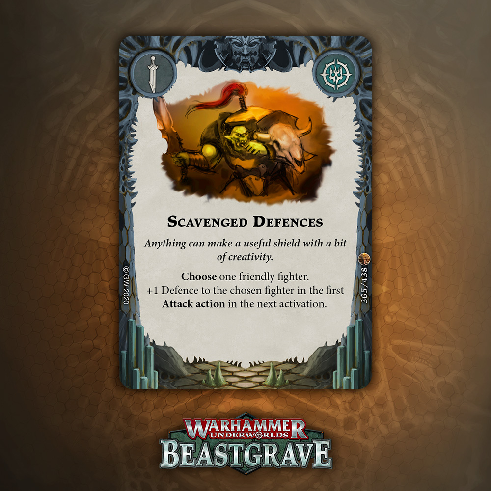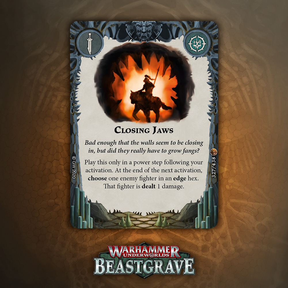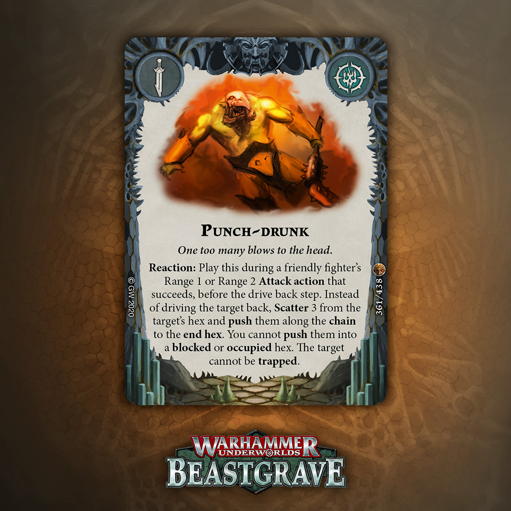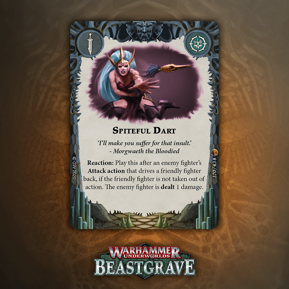 I like the design of this card a lot, especially for tougher warbands that can take a hit and keep fighting, but overall one damage plink that relies on being attacked, being driven back, and surviving doesn’t inspire a lot of confidence. That said, it blocks the reaction window for Pit Trap and Snare, which is nice enough to warrant consideration.