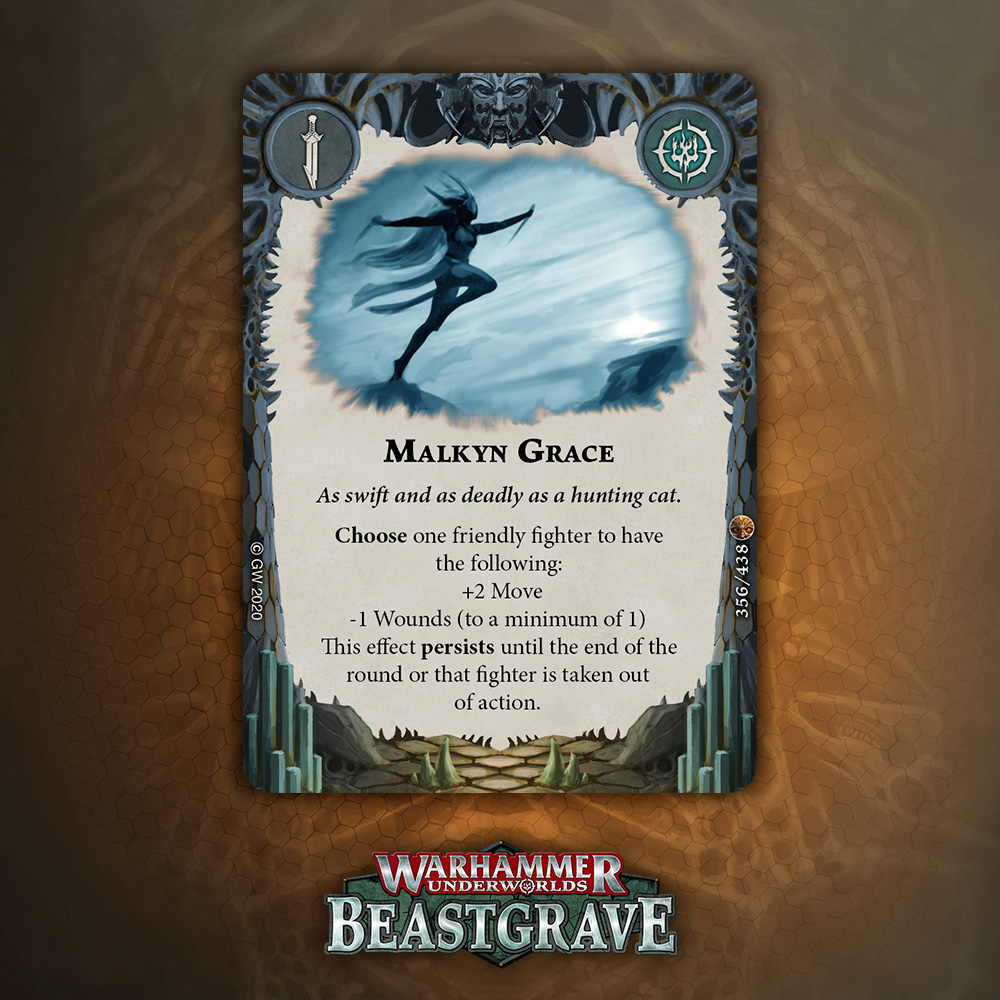 This is effectively a second Spectral Wings, but with a downside. However, that downside might not be a downside depending on the situation. If you use it in the last Activation, or use it to get out of combat range, or use it to close to a lone fighter and kill them, who cares if you’re down a Wound? Excellent addition for any Warband that needs mobility.