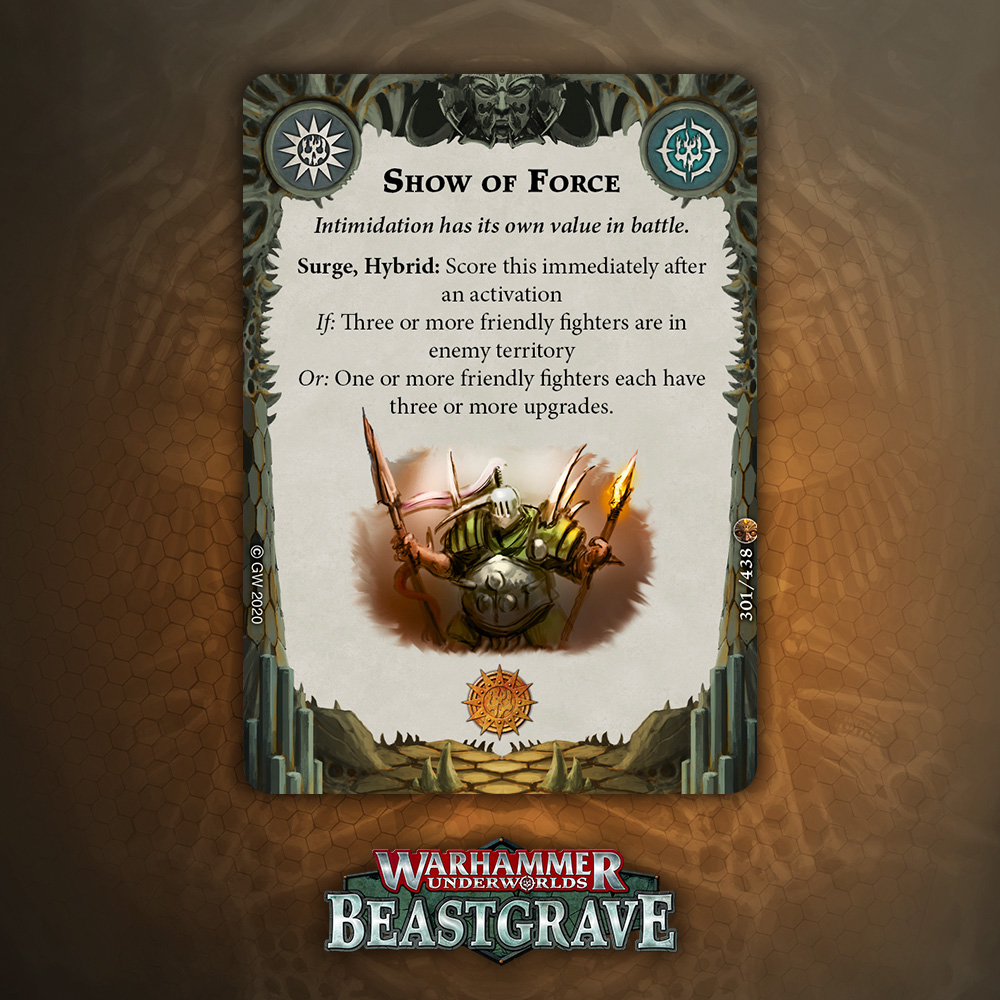 This is really only a card for Elite, Control builds, and really is better in Warbands that have Ploys that put you on Guard. That said, in those Warbands, you can make this a free score with no interaction, though you miss a lot of movement unless you rely on Ploys.
