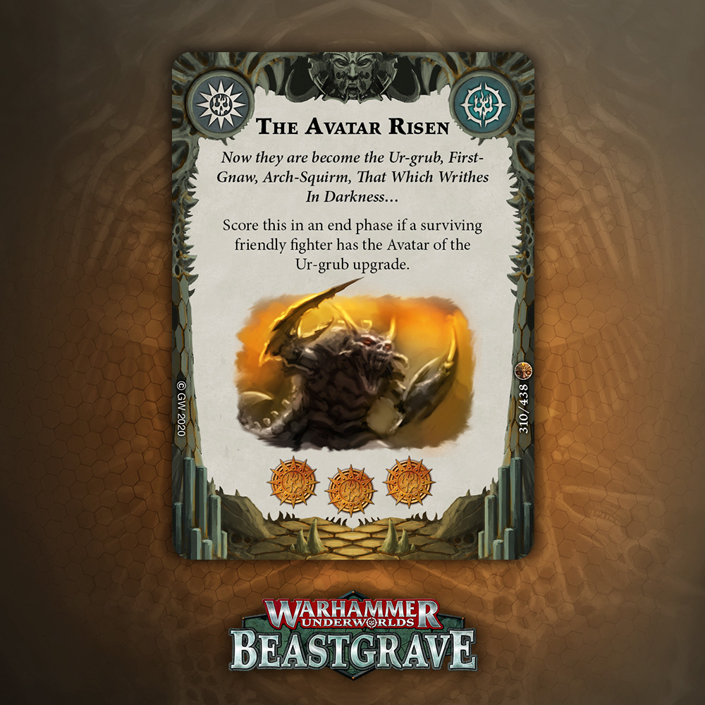 I love this card. Underworlds has seen its share of “get extra Glory for equipping related Upgrades” - from Relics in Season 1, to Tomes in Season 2, and recently Lost Pages. The Avatar Is Risen feels like one of the best implementations of it. You have three Upgrades that all give fairly tangible benefits, and 3 Glory any End Phase up for grabs. You could potentially score this in End Phase 1 with some really clutch draws and scores, though more likely you’ll be looking at this as a Third End Phase card most of the time, with potential to score earlier, a bit like Aggressive Strategy. However, it is draw dependent, so you’d probably have to build around it with things like Frenzied Search and Unnatural Truce.