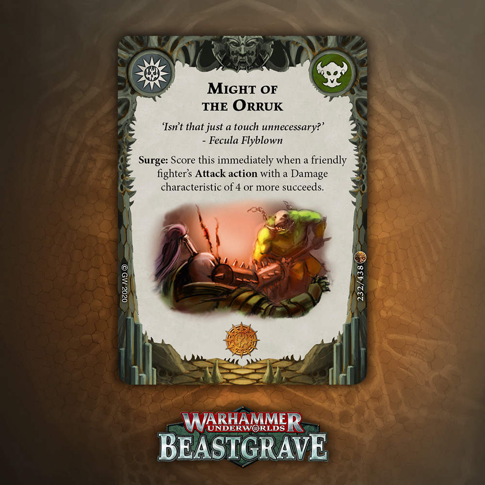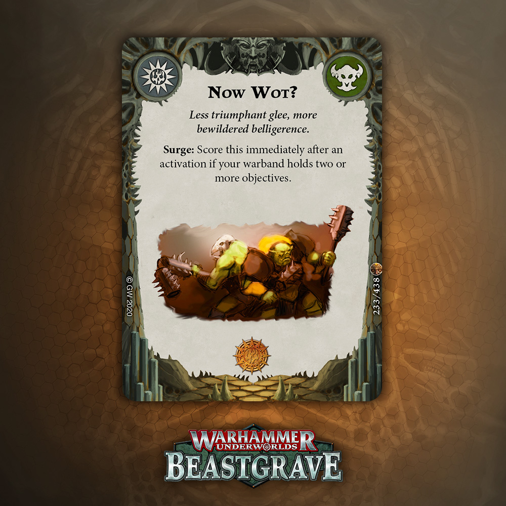 Raf: This feels a lot like the Grymwatch release in that over half of your Power Deck can be faction cards and you'll be well on your way. The catch here is that moving away from this is difficult given that you really need these cards for your Waaagh Counter economy, which is the downside to having boutique counters for a faction.