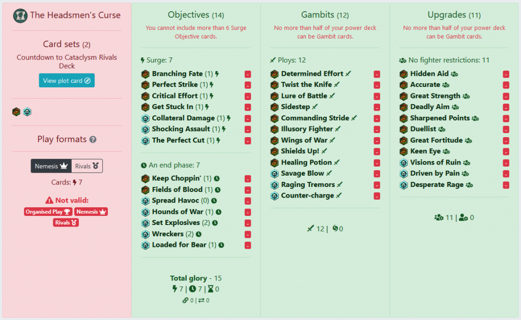 If your objectives aren't split into Surge and An end phase, you can click the Change card sort option button above the deck list. Credit: underworldsdb.comYou'll notice that it helpfully tells us this deck has too many surge objectives and that we can't have more