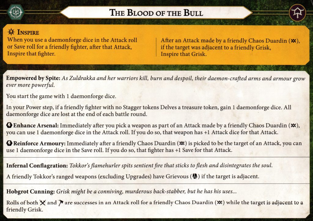 There are two separate inspire mechanics for this warband – one for all the