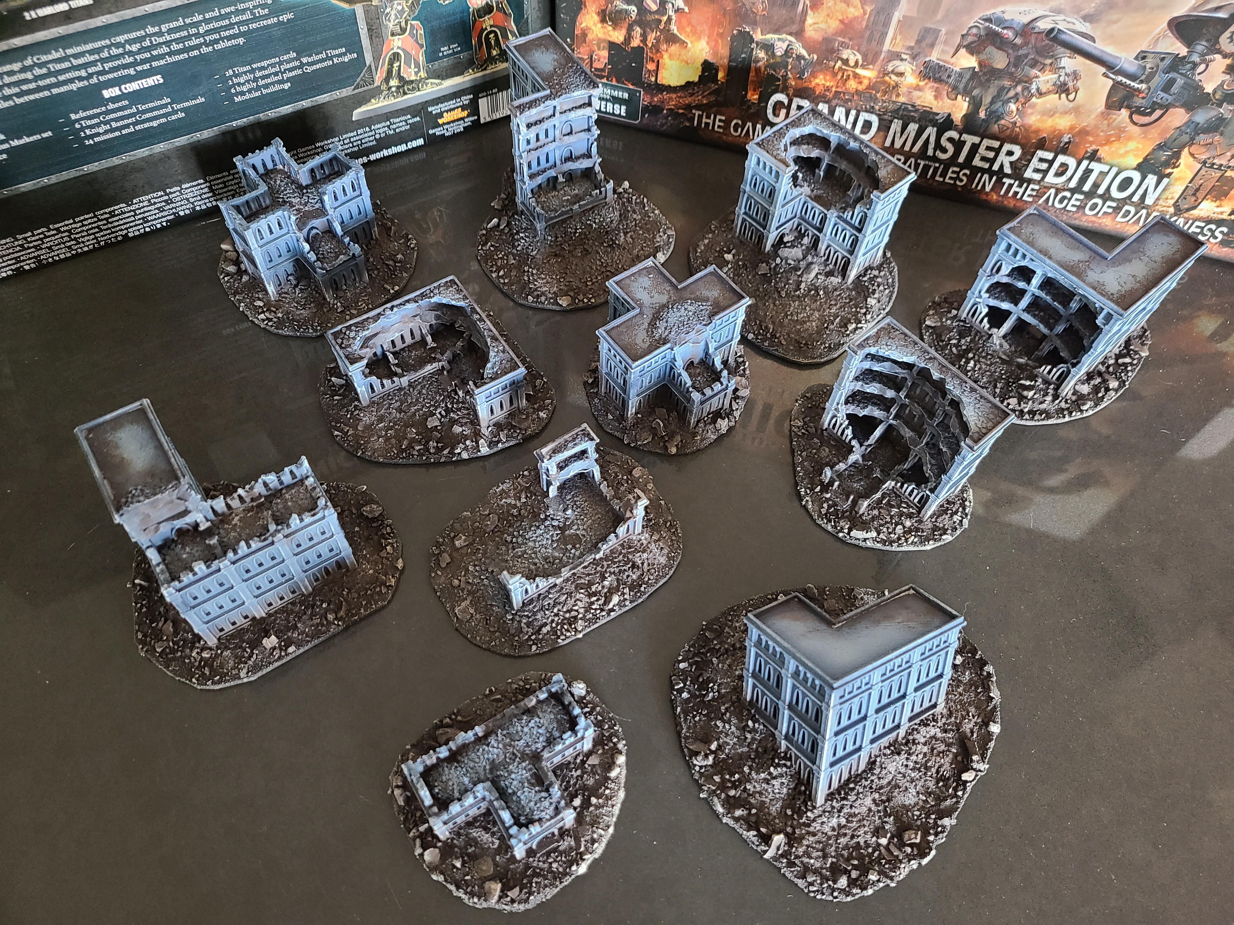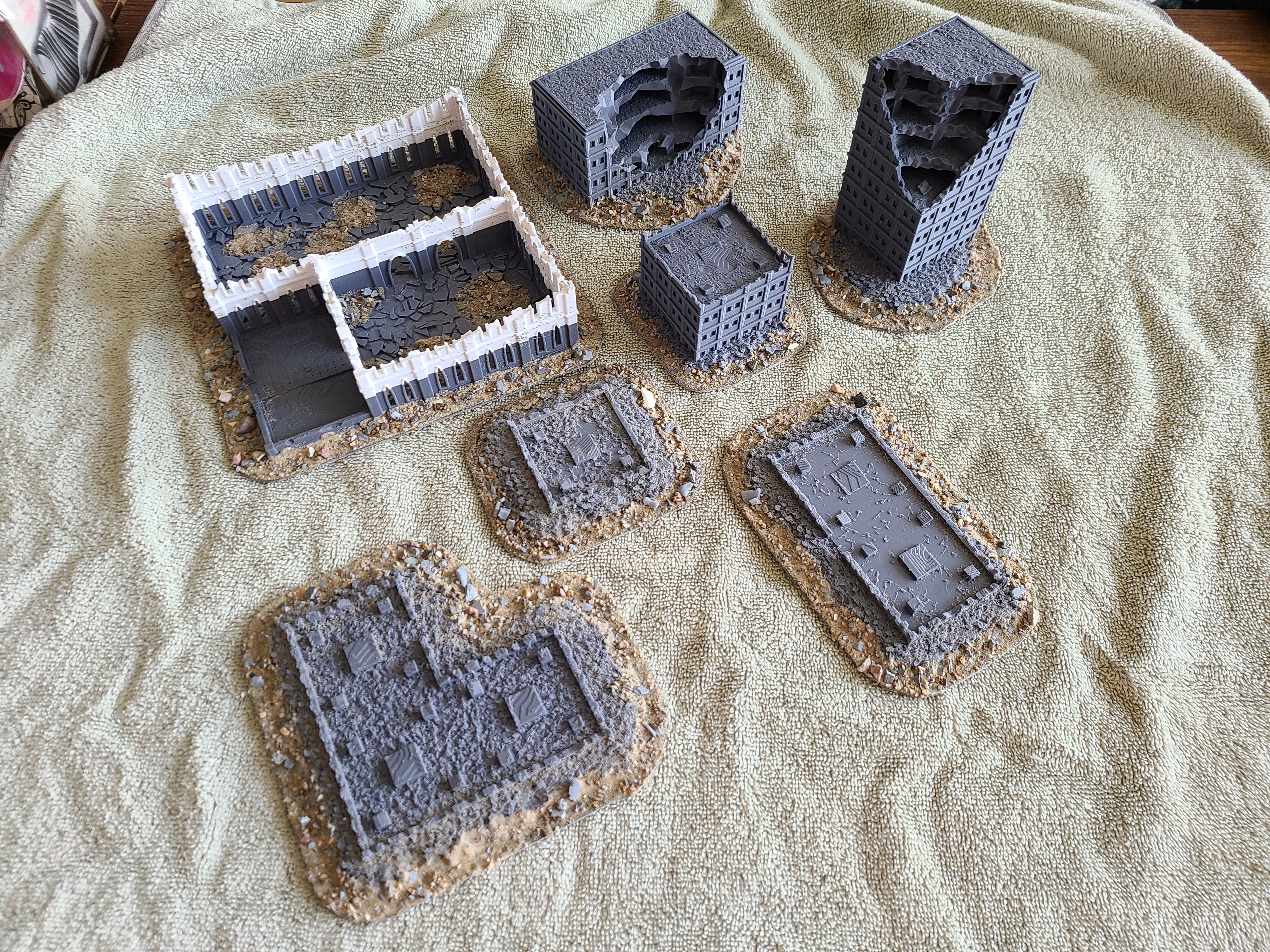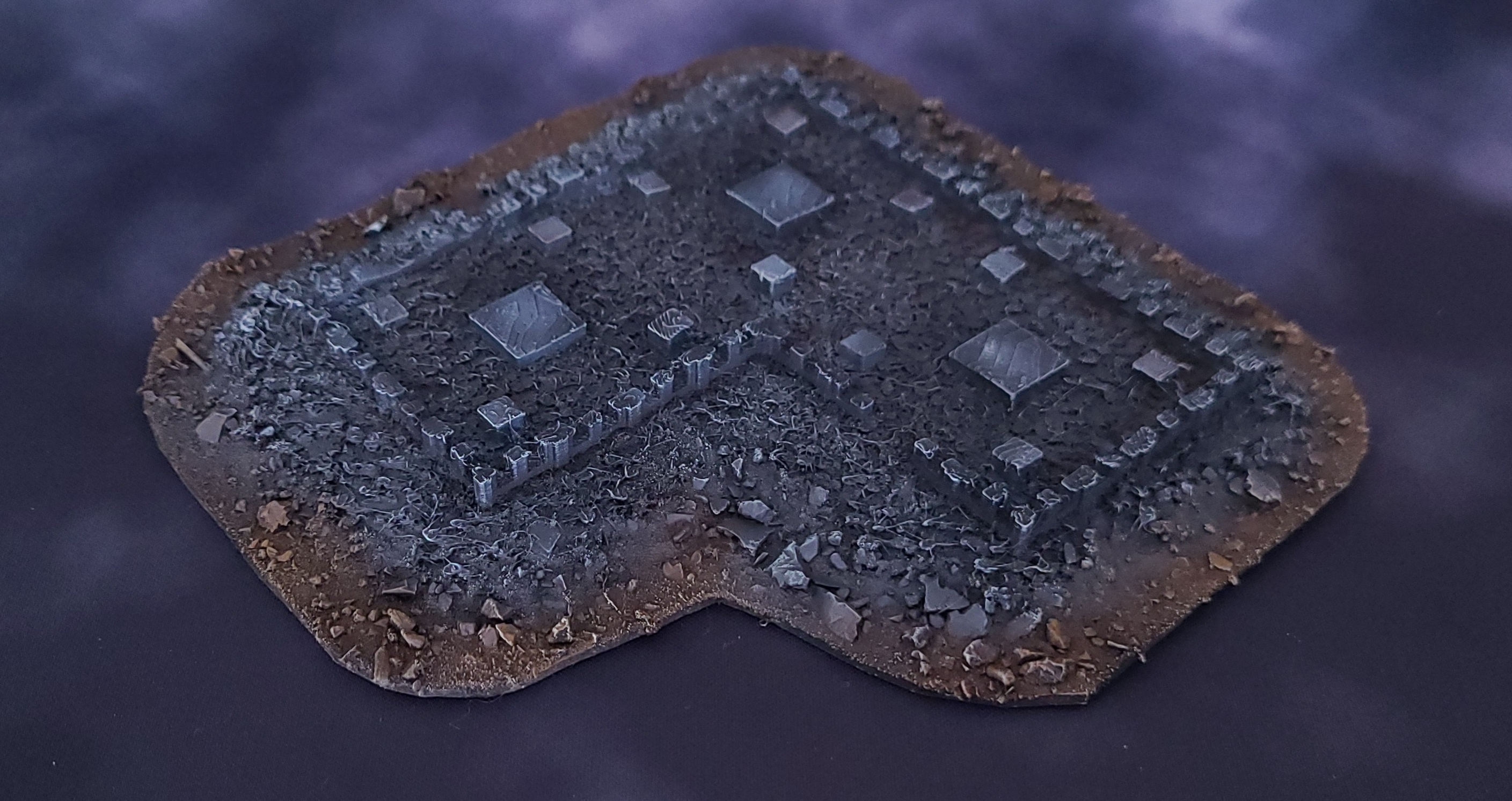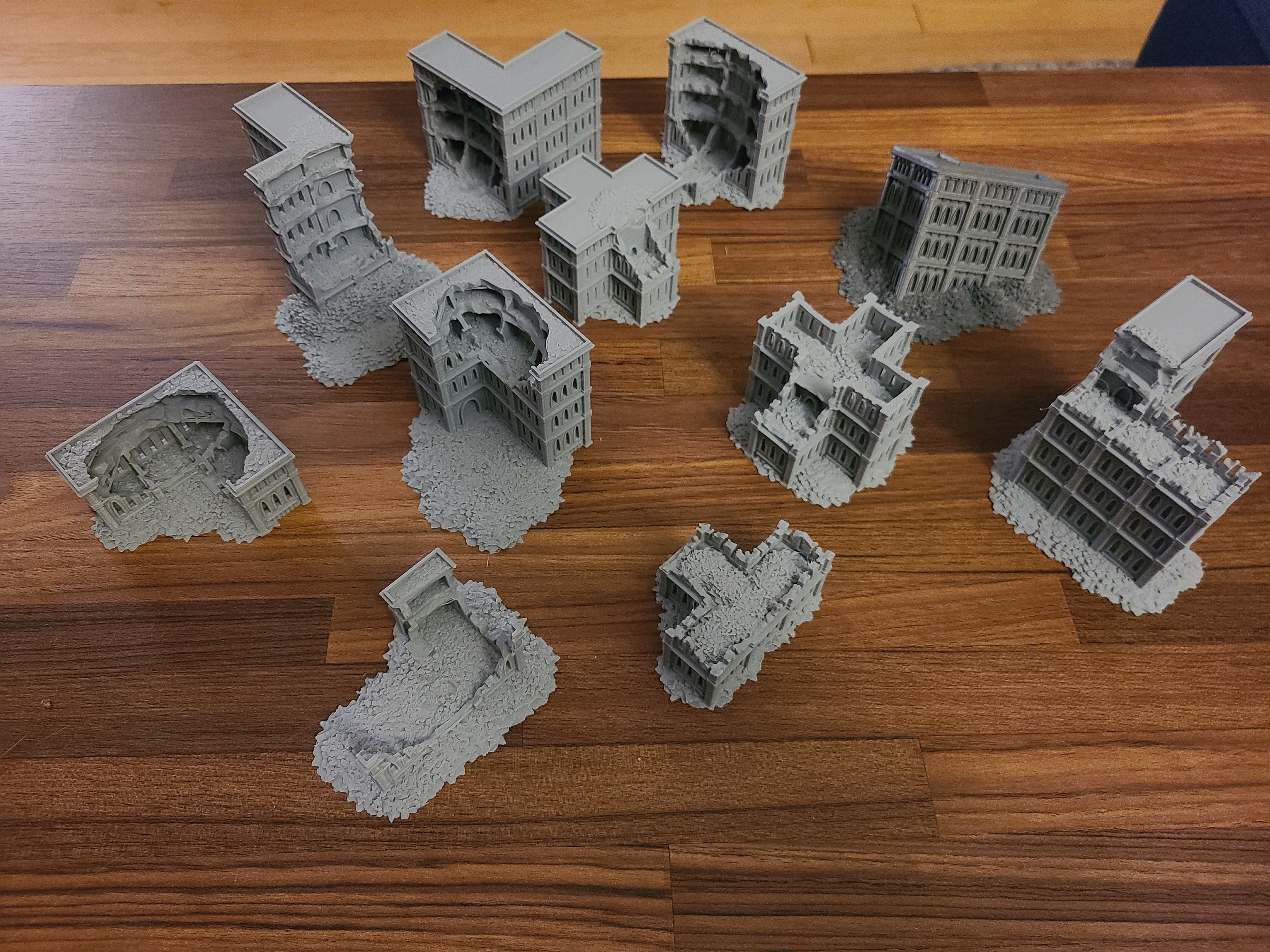 I've been wanting to play for years and the latest release finally got me. To help garner local interest, I've started on the terrain first. Goonhammer has an excellent guide on Titanicus Terrain, and it inspired me to paint my own. I didn't want my buildings to be intact, so I found some ruined equivalents instead. If you have access to a 3D printer, you can purchase these files and print them yourself or buy them printed from someone else (the designer sells printed versions off eBay).