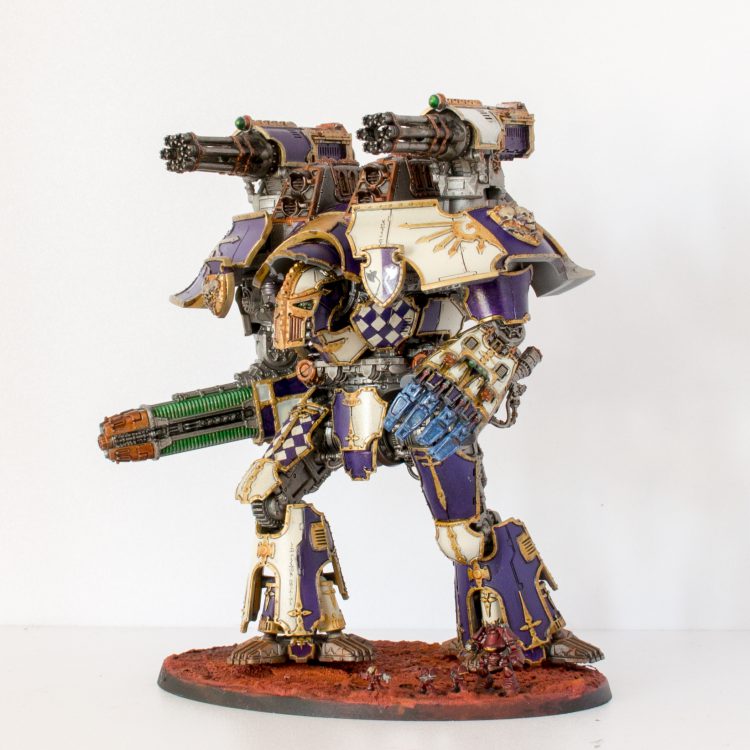 Round 1 will see them both taking Full Stride orders, likely while under the effect of the War Lust stratagem. This gives them an impressive 16” of movement, getting me into the middle of the board and ready to threaten charges out of the gate. Once I’m there, round 2 is about fishing for a kill or two to remove a piece from the board and set up for a devastating charge. The goal will be to activate the mega bolter-equipped Warlord first to knock down shields, then follow up with the turbo-laser Warlord to put a whole pile of strength 10-12 shots into something and hopefully score an engine kill. Depending on how the board looks, I might even issue Split Fire once or twice. The next phase of my plan is charges, probably with the Bloodthirst stratagem. The goal here is to set up two charges in a single turn to run down two models at once with strength 14 power claws, strength 13 smash attacks, and strength 10 Sunfuries (strength 12 if I’ve got the room on the reactor track, which I honestly doubt I will at this point).