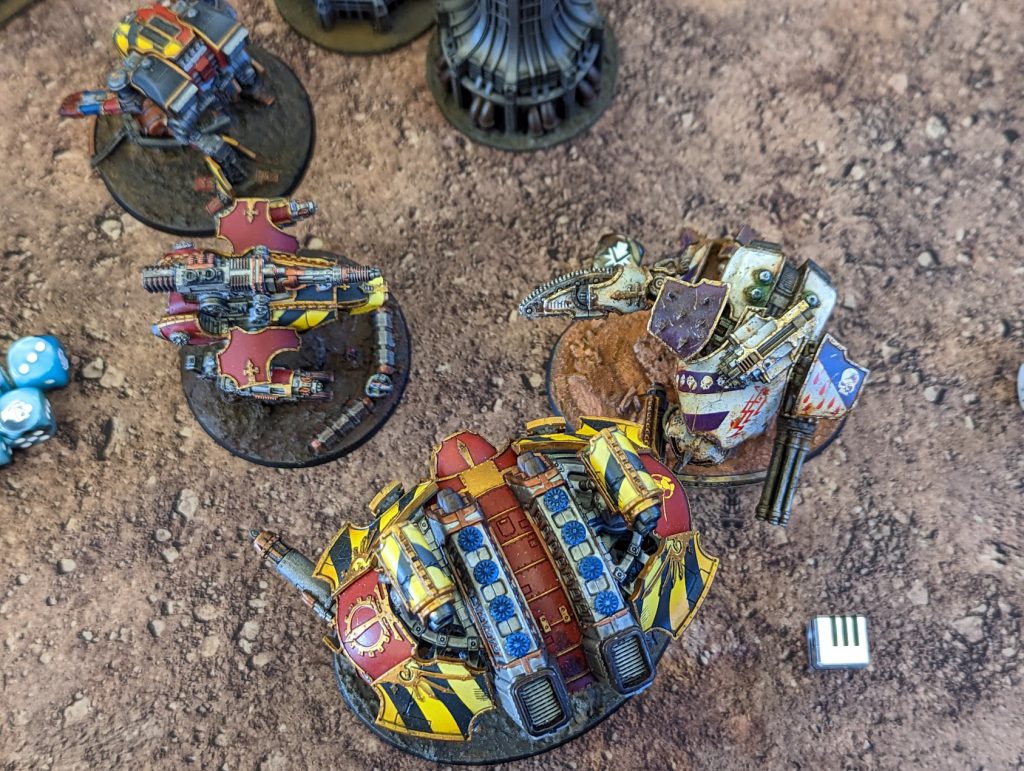 It's a shame I didn't have the initiative this turn as I feel I could have at least won one of the key engagements on the table - the Iconoclast/Warlord or Warlord/Warbreaker. The Warbreaker ended up falling in a line along my deployment zone - thankfully rolling weapon as the otherwise STR 15 attacks would have oneshot everything. The Atropos Knights would have their revenge by poking the Warlord in the back.