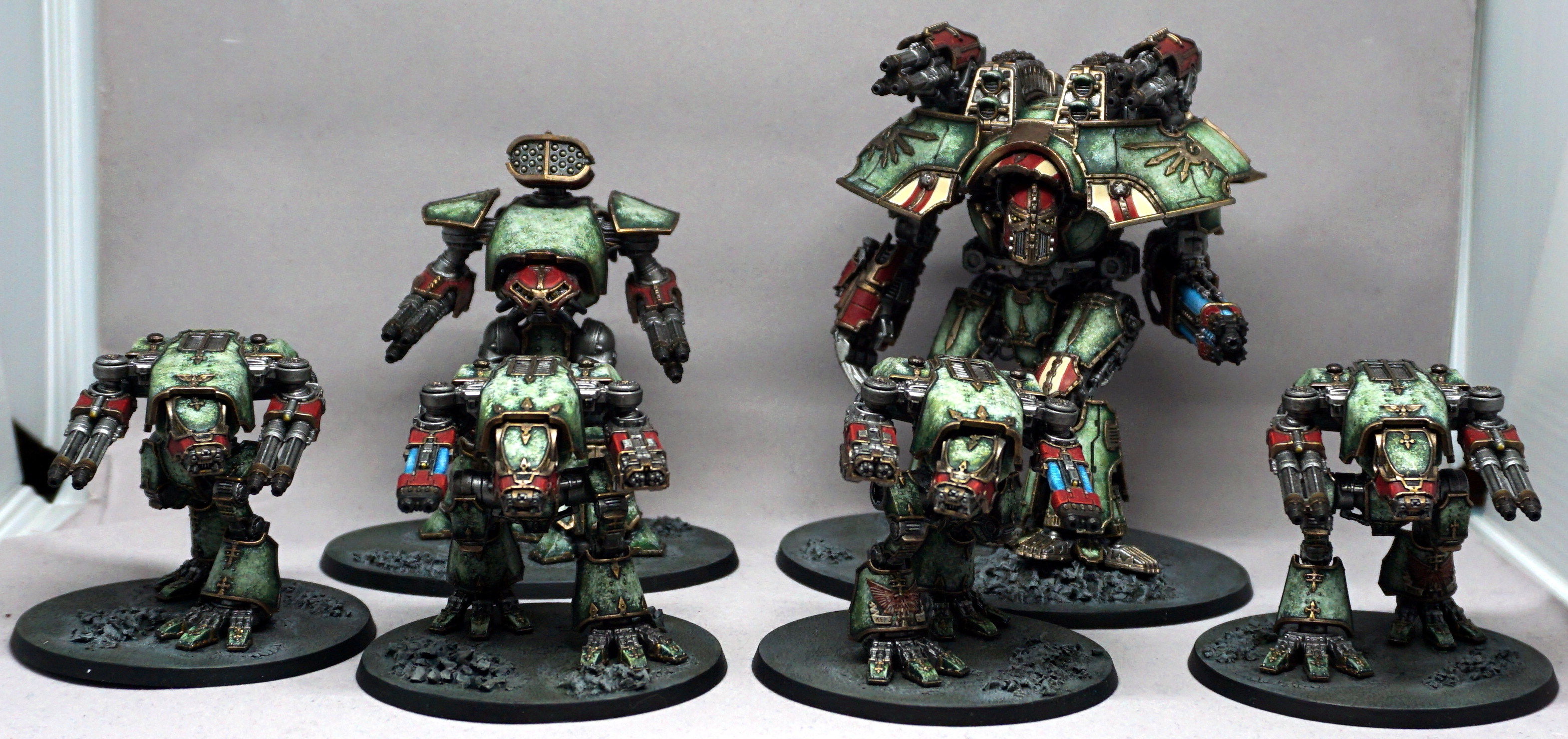 The Firmus utilizes skirmishing Titans to screen one another to deny any attempts to focus them down.Mandatory Elements: 1 Reaver, 2 Warhounds Optional Elements: 2 Reavers