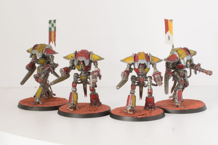 Adeptus Titanicus Questoris Knights. Credit: CorrodeRequired Elements:1 Warlord, 2 Reavers, 1 Questoris or Cerastus Knight banner Optional Elements: 2 Warhound, 1 Questoris or Cerastus Knight banner