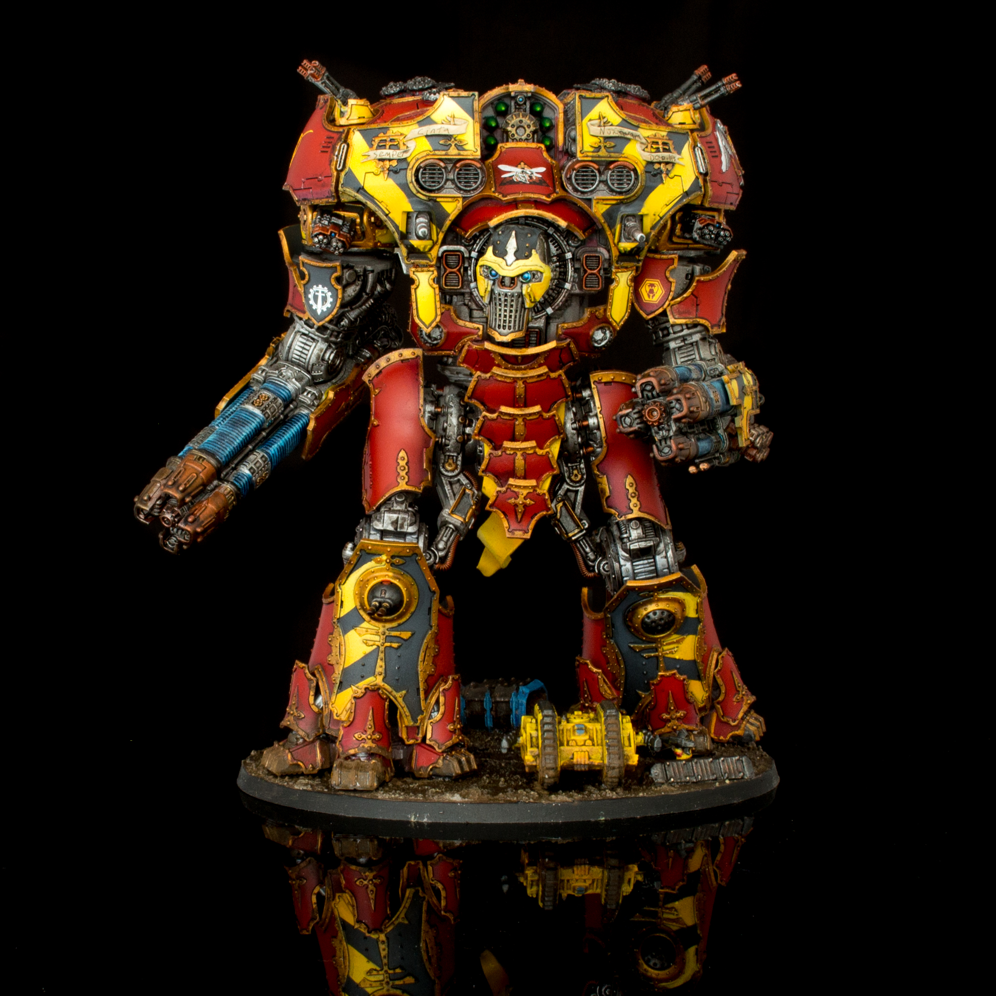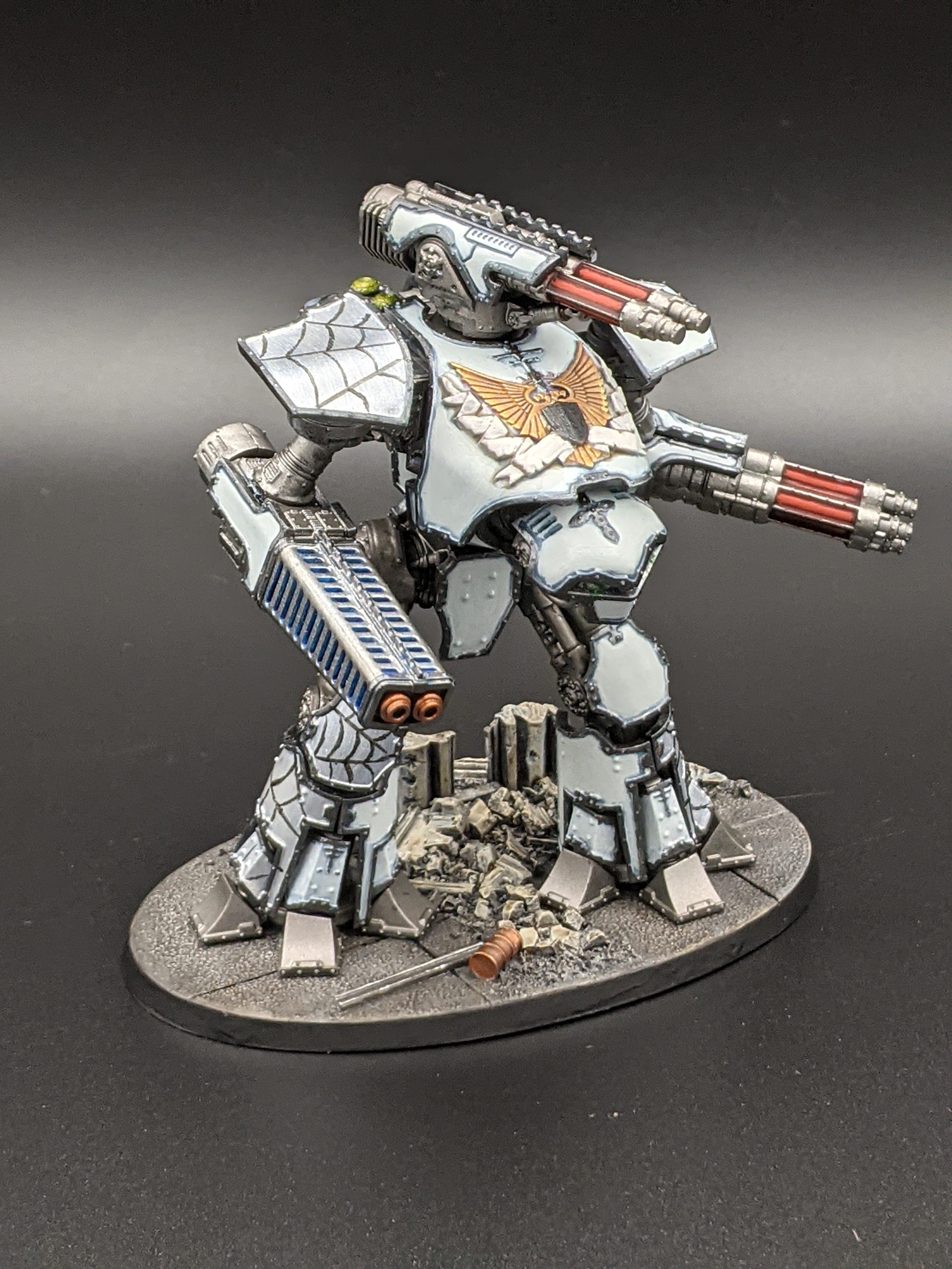 Legio Ignatum Warmaster Titan. Credit - SoggyAs a general rule, you’ll want to keep one or two heat to play with in the first few turns so that you can push for Voids to Full while you’ve still got full voids across your battlegroup – being able to re-roll 1s is much better with the 3+ save than with the 4+. This is compounded by Titans with weapons that have the Draining or Maximal Fire traits – the additional heat you’ll incur from using these weapons can put you in a tough spot, so avoid overusing them. As an example, firing a volcano cannon into voids might result in another save or two, but you have to balance that against the extra heat you’ll pick up from using it. As a result, if you’re not going to knock voids offline and open up a shot for another weapon (or another Titan), it’s often wiser not to take the heat and instead wait for a better shot. You also won't want to be using Maximal Fire to gain extra strength on a gun firing into voids, as this does nothing for you except potentially cause some heat to be added to your track.