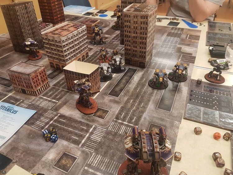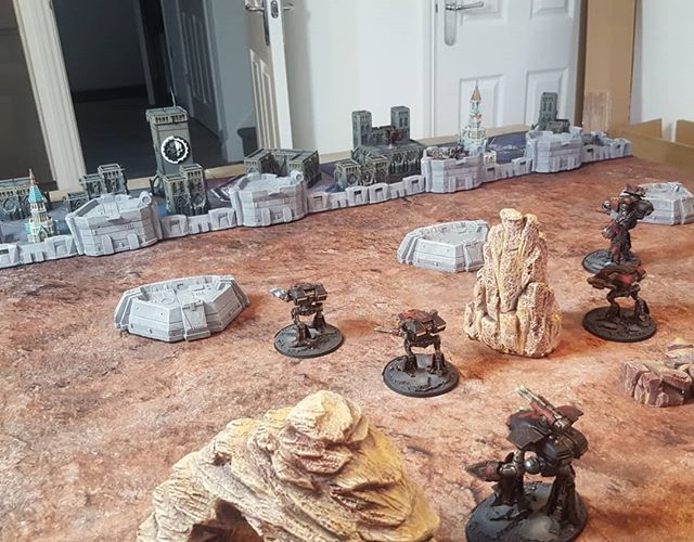 Legio Xestobiax Warlord getting outnumbered. Credit - Soggy- TTCombat’s CityScape box is one of the cheapest options out there to quickly get a dense urban battlefield. Initially intended for their Dropzone Commander game, the scale is pretty close and has loads of LOS options.