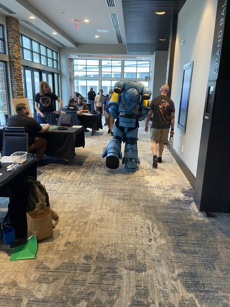 Bar a single Space Marine sighting, that is. Your author, incidentally, is in the Nova Cat shirt. Credit: Scott “Clamps” GrillSome of the other players complained about an automated fragrance-dispensing machine stationed near us, but I hardly noticed it myself. There was alcohol available on Saturday, with a staffed bar just past the end of our gaming tables and waiters occasionally circulating the area, while Sunday was a dry event.