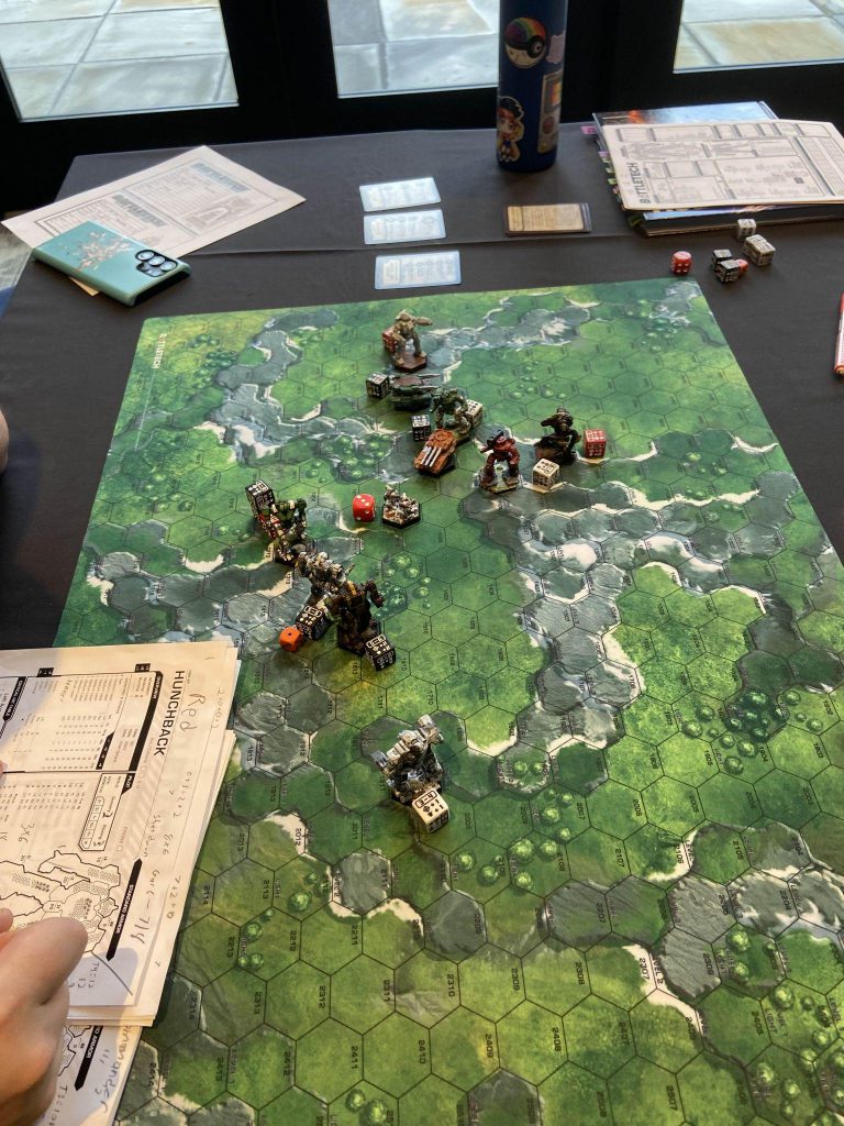 BattleTech was tucked away in a hallway/lounge behind the main hotel ballroom where the main Warhammer gaming was happening. We were an inconvenient distance from the restrooms, but I felt pleasantly secluded, and we were never really interrupted by participants in any of the weekend’s other events.