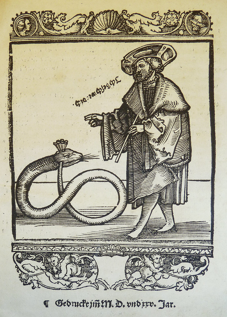 The Devil in his Guise as a Snake, Heinrich Stayner of Augsburg Credit: Penn LibrariesThere are many characters within Beta’s story - Abnett Pickwicking his Papers through an endless cavalcade of side stories and passing acquaintances, all intricately detailed, thickly described in long, analytical passages in dry appraisals. Every model is a character, a blanchitsu accumulation of faded glories and mystery-cloaked rags. No one goes without the meticulous assessment provided by Beta’s cognitae training. Except one - the King. Core characters hidden from the audience is a mainstay of the form, characters defined by their absence or effects on protagonists, heroes and villains (and is the King one, or the other, or both?) glimpsed only out of the corner of your eye. We assemble the nature and plans of the King obliquely, through the supplication of his worshipper-thralls, machinations of his enemies and obliviousness of the Inquisitors on his tale. He has been hunted for years, and yet even the most very basic and yet most overwhelmingly powerful facets of his existence are hidden. And yet - nothing happens in Queen Mab, in the world of these novels, without the consent of the King. The more well known our characters, the more we have invested in them, the more we understand their motives, the lesser they are - grit and grist in the mill of plans made above and beyond their comprehension. In a world of allusion, he is the most and least obvious, the King in Yellow (we smile, we nod, we understand the joke) felt but not seen. Despite journeying to his world-city, his impossible palace of not-quite-solitude, all we know of the King is his colour, the most extemporate of his works and the narrative demands commitment to a thousand other novels before it will unfold any further, pausing everything in a moment of ice-cold, arresting, entombment to allow you to piece it all together before, finally, the mask is decidedly not removed in the final words of Penitent.