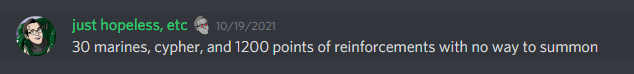A keen-eyed reader may notice that this list has what I can only describe as an “Avengers-level number of characters,” as well as some stand-out units, such as an incredible ironclad dreadnought with no guns outside of a storm bolter. Does this list actually have some teeth to maybe win a game or 4? Maybe, especially in this format, but at the end of the day, there's just a lot of very good units in the Space Marines book, and it's very hard to intentionally make a terrible list while still fulfilling the requirements presented in this challenge. I'm very happy with the amount of characters I was able to bring - a nearly Max squad of Devastator Marines without a single heavy weapon between them also feels great. I got to plug in some Darkshrouds, as well as “some” ancients...basically I should be calling this list The Flagbearers.