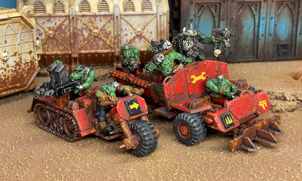 For those of us who were solidly 90s kids, Gorkamorka isn’t (and perhaps never will be) the name of the Orruk God of destruction. Gorkamorka was a 40k spin off game, a weird, complicated, anarchic play experience set in the deserts of the Ork world Angelis, inhabited by gangs of truck and bike mounted gangs with names like Da Red Arrer Boyz, Da Spike Boyz and Burzuruk’s Bad Boyz. Written by the big names of the GW design team - Rick Priestley and Andy Chambers, plus an up and coming Gav Thorpe - it was light, fun, heavily randomised and all about your own ladz– Necromunda with a decidedly Orky twist. At its heart, it was a narrative campaign system bolted onto a very granular classic 90s GW model. Gangs of 6-8 Orks divided into Kunninly Brutal Morkers and Brutally Kunnin Gorkers fought over the main campaign resource – scrap - while haring around the board on bikes, half tracks and trucks, getting blown up, shot, kicked off the side of moving vehicles, chopped to bits and then returning to Mektown for the campaign resolution. The rules, at all stages, were pretty complex and detail oriented. The classic GW statline and 40k 2nd edition DNA meant that granular detail was the order of the day, a far cry from the complex but semi-streamlined GW games we’re now used to. Fights were resolved via dice comparison, vehicles had individual hit locations with effects that would spiral into glorious, complicated chains of actions – skids, out of control slams into terrain, trucks spilling Orks all over the harsh desert sands.The games were fast, a little silly, and the mechanics didn't really slow the game downThe rules governing your Orks, and later Diggas, Grots, and Muties, were all pure Necromunda with the slight Orkish slant that melee was significantly more effective and powerful than blasting away with a shoota or slugga. Where the game really broke away from its older, underhivier sibling was in the vehicles. Gorkamorka was all about vehicles, and the real innovation at the time was the emergent, out-of-player-control gameplay that arose from them. Orks being Orks, passing too close to an enemy vehicle could result in a chase, boarding action or ram. Vehicles moved with a push your luck system of gas (predictable, standard and controllable movement) and thrusters – literally just your drivers hitting a big red button marked Go Fasta. The vehicles themselves determined how big your Mob could be – everyone needed to physically fit onto a vehicle, be it truck, track, or bike, and there were no gameplay limits as to what your vehicles could look like. You were beholden entirely to your imagination.