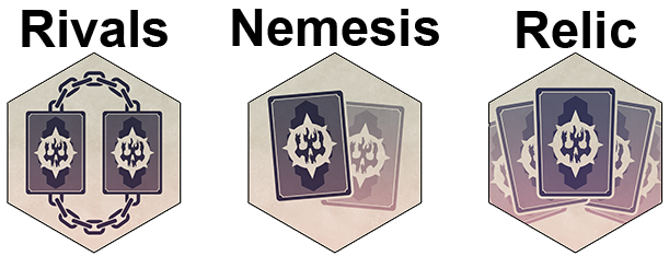 This allows players to have a relatively smooth entry point into the game. They do not have to worry about playing catch up and hunting down dozens of out of print cards or boards. If you want to play Rivals, you just need a few boards, dice, and a single warband (either an individual release or one of the ones in a core box). If you want to play Nemesis, it’s the same thing but adding in a universal rivals deck.