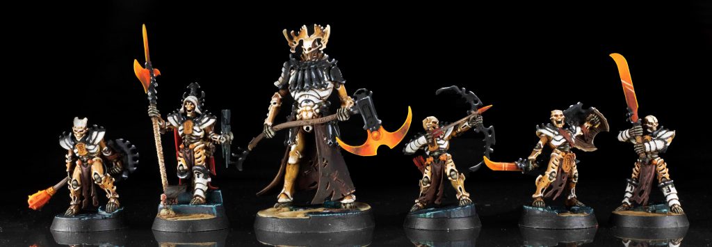 The Headsmen’s Curse: This warband holds a special place for me since they’re the first ones I started with when trying to get the hang of the game. The leader of the warband is actually the sword that the Wielder of the Blade uses – all the ghosts are servants to the sword. The Wielder is also the hardest hitting fighter in the game, and the entire gameplan behind the supporting chainrasps is to… well, support the Wielder. Either simply by flanking the Wielder’s target, increasing its already formidable damage with the Sharpener of the Blade, or the Scriptor of the Sentence dolling out condemnations to the enemy to inspire your warband, all the fighters can do their part in helping Terminus claim heads.