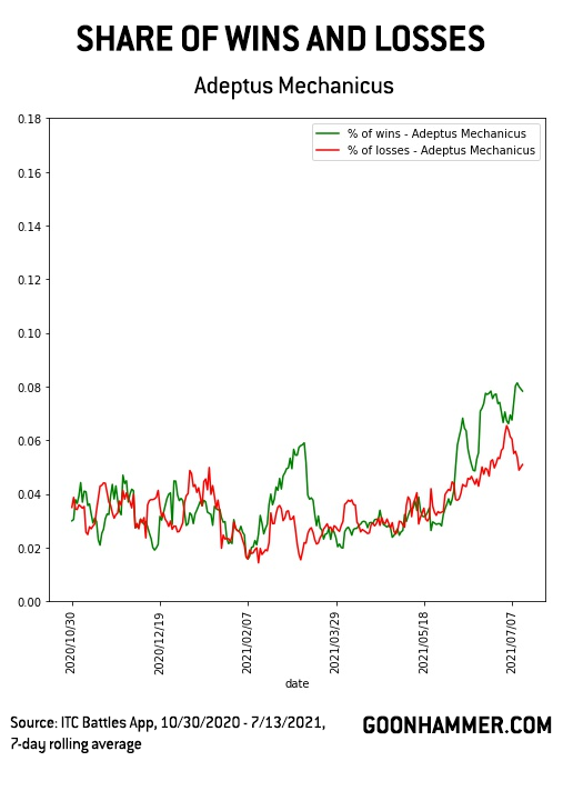 All of this is to say that the data shows the Adeptus Mechanicus with a clear advantage that will likely continue to increase, at least in the short term, and may become more oppressive as the number of people who play the faction increases.