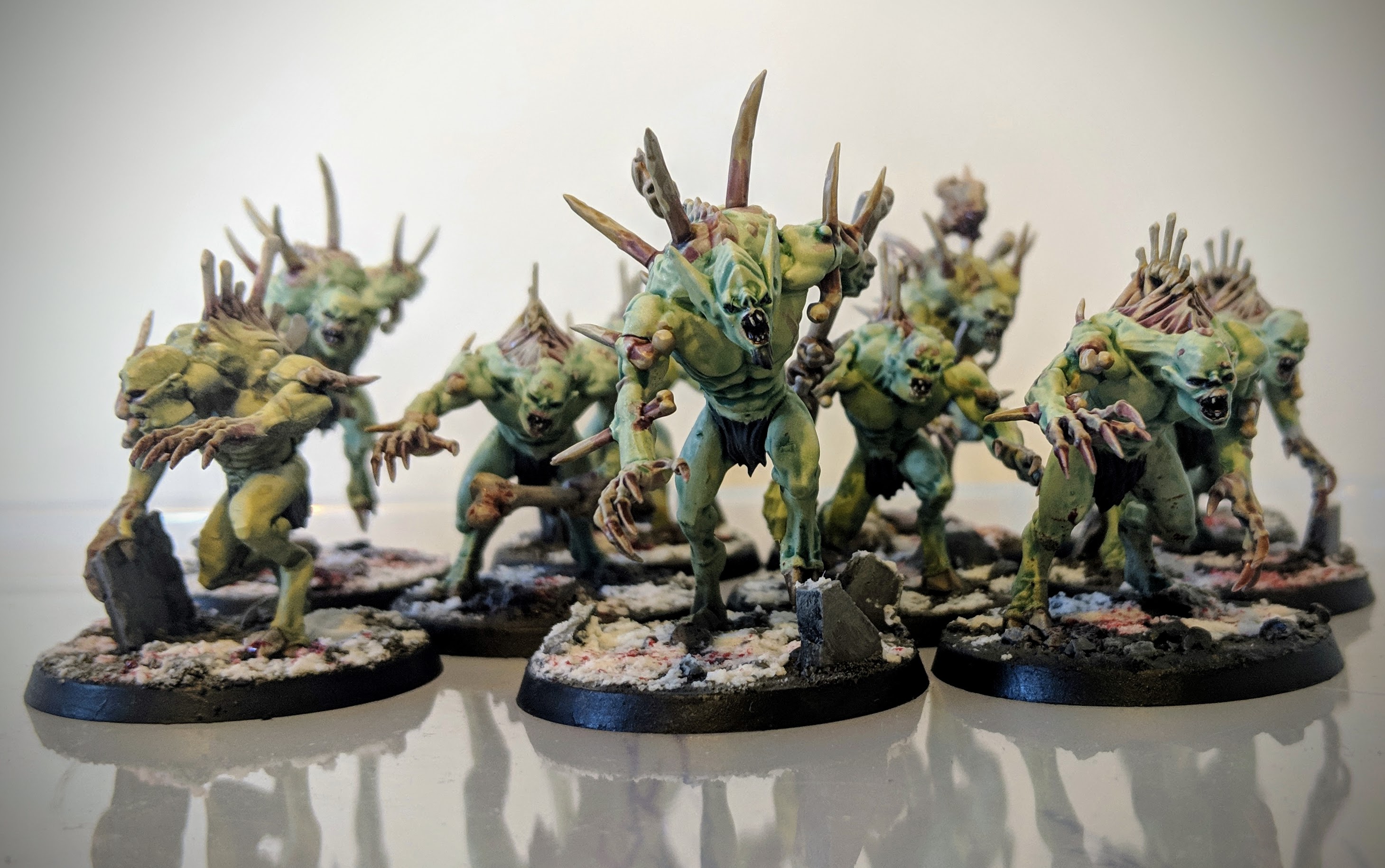 Overall, the Flesh Eater Courts were an ideal pick for this. They do not have many ranged attacks, so a simple behavior routine that consists of charging at the closest opponent approximates the army pretty well. Naturally a skill player is going to be a lot more shrewd on who they engage, but it will do the trick as the nuisance its meant to represent, while not being a complete pushover, or too complicated and risk slowing the game down too much.
