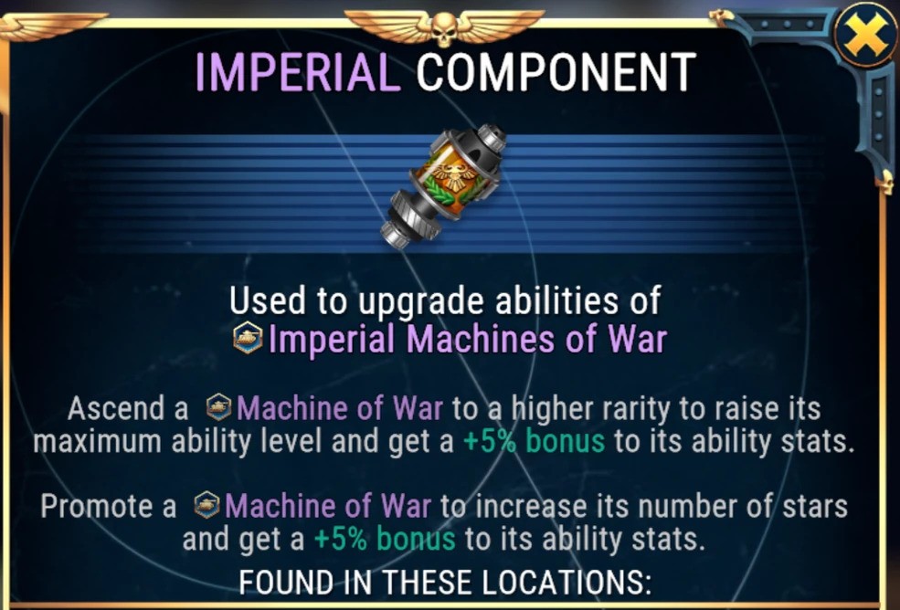 - What it’s used for: Upgrading other things: items, badges, orbs, etc. by combining lesser versions. Also, upgrading Machines of War.