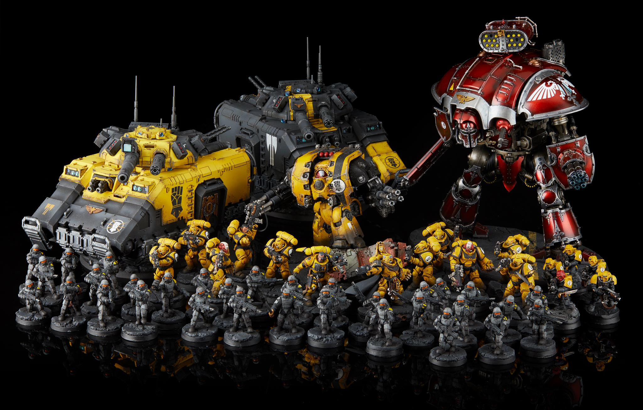 Imperial Fists Army again, this time with allies. Jack has tied together 3 distinct forces with common basing and smart colour schemes. Credit: Jack Hunter