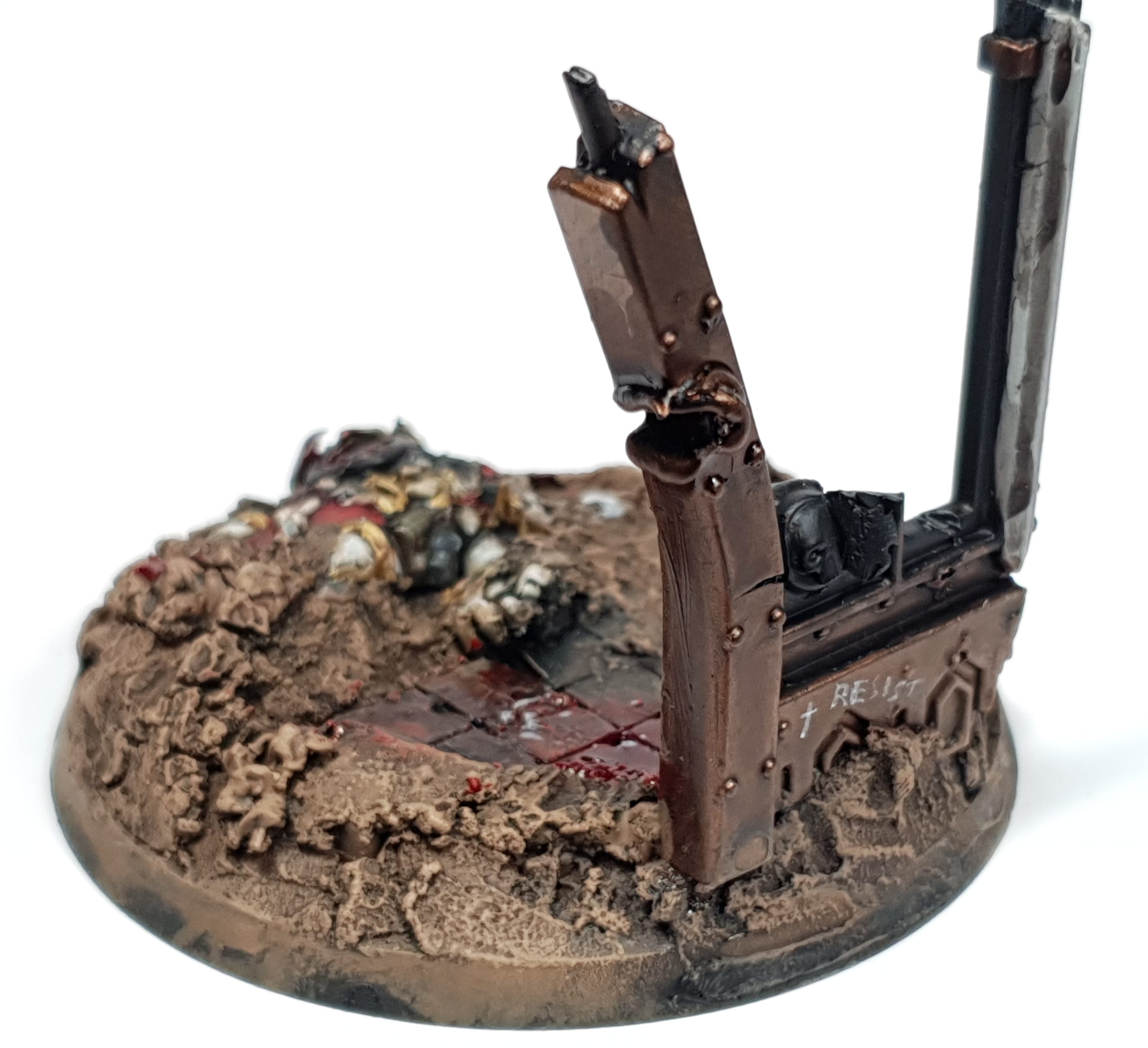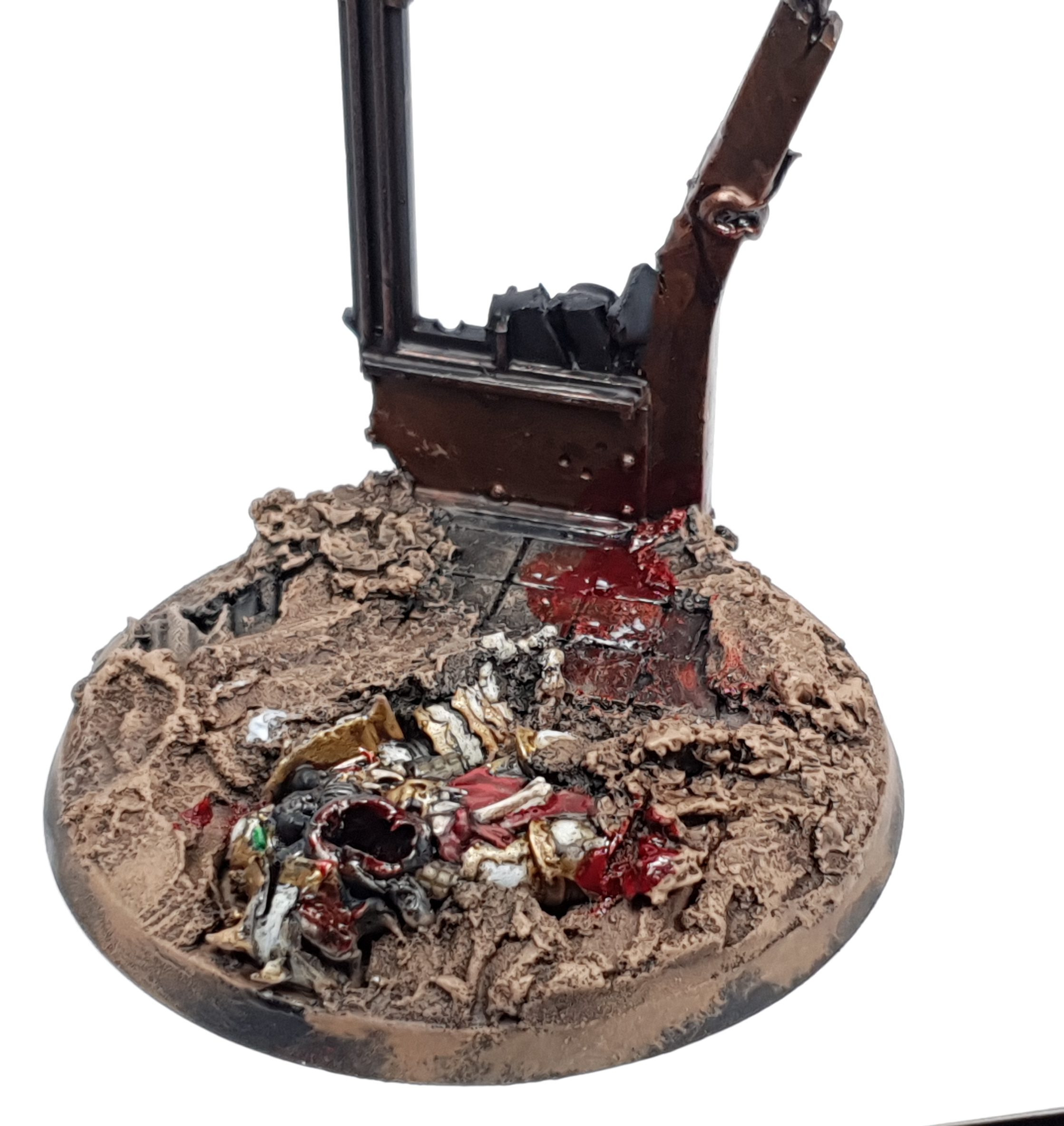 Just a note here though. Try to keep the focus on the model. If you want good examples, the new Sister Hospitaller and Space Marine Apothecary have some nice base details that sell you on what the model is meant to be doing without going over the top. On the other end of the spectrum, unless you have a primarch or a full on diorama, try to keep the dead models on the base to a minimum.