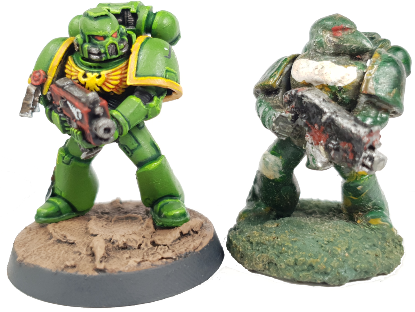 - Who are they fighting/with against? Knowing where my army is fighting influences who they’re fighting with and against - the Siege gives me easy opponents from a variety of chaos legions, as well as allies in the form of Blood Angels, various mortal humans (Solar Auxilia and Militias in 30k, Imperial Guard in 40k), Custodes, and Knight households. I can use all of those both as base decorations and to fill out my armies.