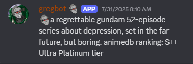 The other big tier? The $5 per month tier. This is where you get access to our Discord. The Discord is great, with more than a thousand (mostly) wonderful people, where we talk about strategy, offer advice, crack jokes, and interact with Gregbot, an unhinged bot we made to welcome new patrons to the Skeleton Wars and also offer advice and rank things:
