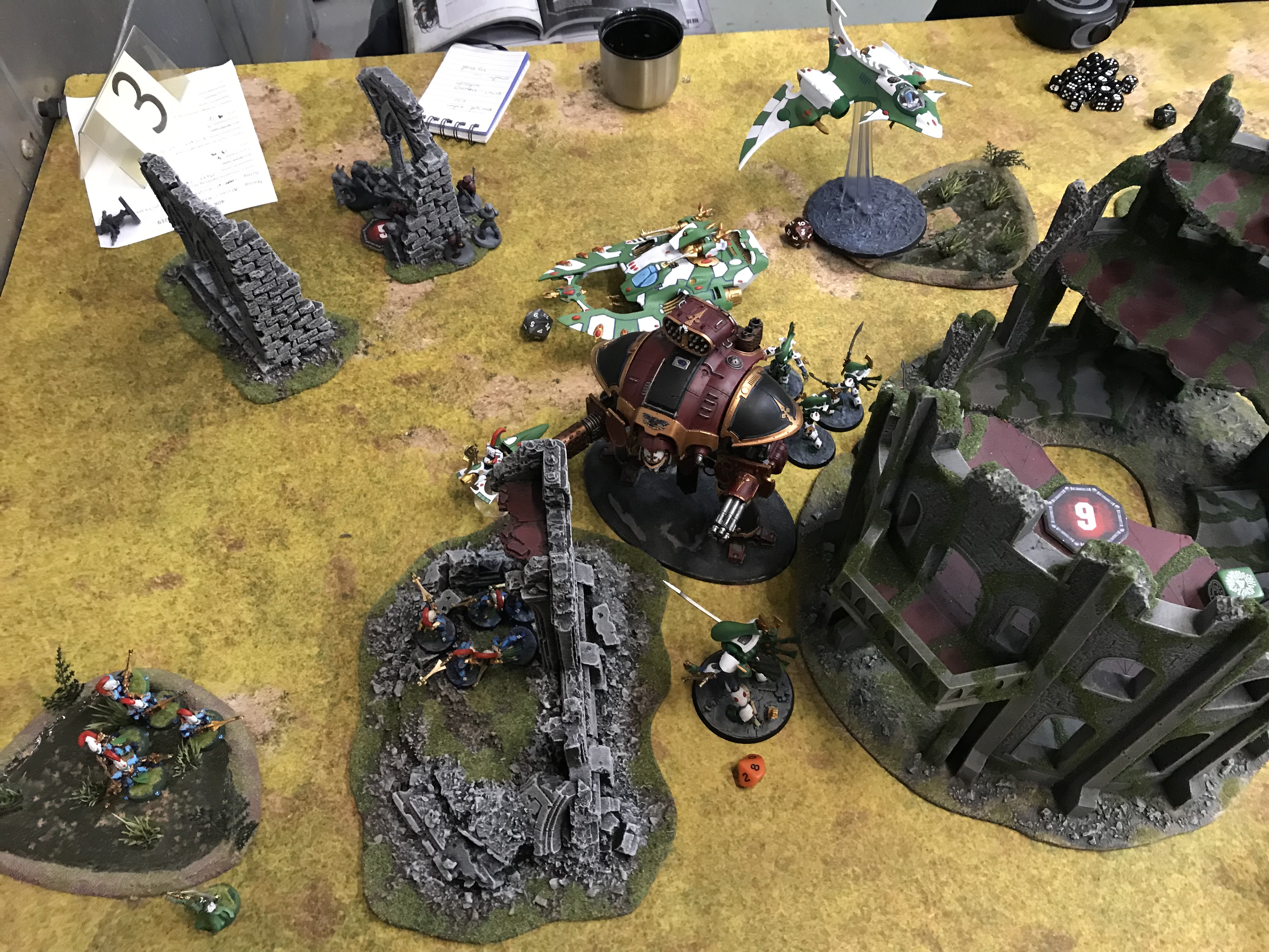 I was kicking around with a Wraithhost I'd used to motivate myself to get some models off my backlog, but my opponent had a rather ferocious Knights and Guard loadout that looked like giving me a tough game. Still, I'd built with the ability to kill Knights in mind, and was ready to see if my ghostly bois could slam them off the table.