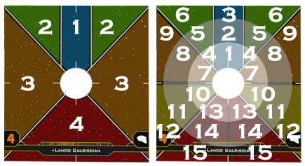 - The Solo AI recognizes 4 distinct arcs: bullseye, front, side, and rear. Some maneuvers, especially in the side arcs, use references such as “towards” and “away from” the tally instead of making any reference to "left" or "right" - this replaces the need for making separate "right arc" and "left arc" tables. The base of a ship has lines on it that allow it to be divided up into more specific arcs, however - the HotAC AI has separate tables for "side-front" and "side-rear."