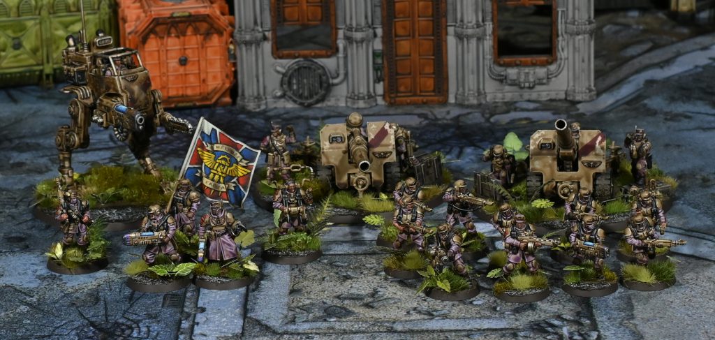 Onto the most recent army that’s attracted my attention, these models have really only just landed and at the time of writing, I am still working through the last squad from the boxset. This isn’t the first time I’ve started guard it’s worth mentioning, and I’m back at it with a minorly modified version of my scheme. I’m not totally sure where I am aiming for size-wise for this round of working on guard, last time I only got a sentinel, a squad of Krieg, and a couple of tanks done. I might commit to filling it out to something usable now that I have the codex but I’m also looking at how I need at least a few more shock troop squads and getting a little leery. While not exactly the most time-consuming scheme, these suckers are dense with details.