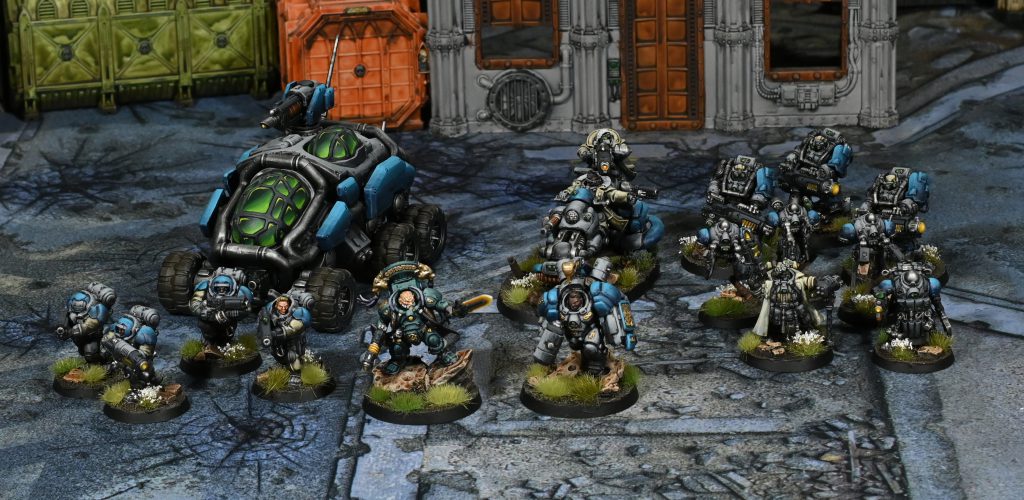 So, we saw the revitalization of another game from GW this year with 30k getting a new edition with a massive range of new plastics that don’t seem to show any sign of stopping, and I got the opportunity to paint up the starter box early. I ended up going with a slightly post-30k scheme as a side effect of an earlier preview model, back in the spring a few of us got a couple of characters as previews well before the game update had been announced. We were going to have a bunch of takes on conventional schemes for Fafnir Rann already, and I was being a bit of a hipster, so I mentioned to Jack that I wasn’t planning on doing his normal scheme which led to the suggestion of doing him up in his later Executioner colors.