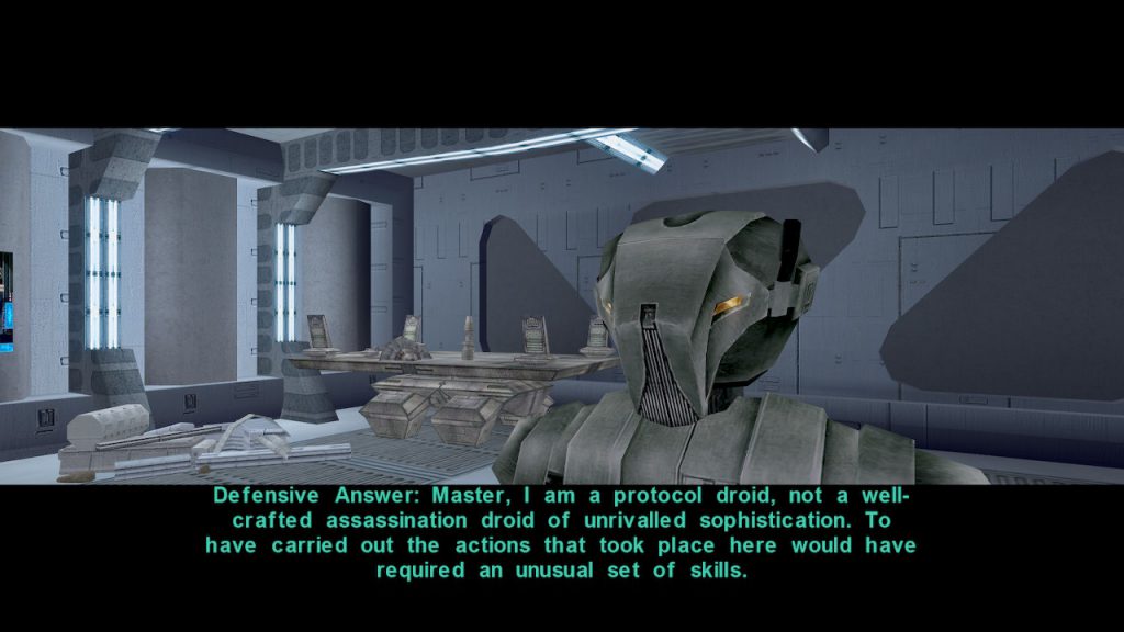 You can take one look at these door textures and tell that no meaningful asset upkeep went on in this port.The premise is really very simple: you’re a Jedi who has suffered plot amnesia, and thus has to reroll your character, who was presumably very competent in a previous life, from level one. The game is built off of the d20 system that Wizards of the Coast released via the Open Gaming License in 2000 thanks to a decision-making ethos in the company that put community over pure nickel-and-diming short-term rent seeking, instantly cemented the d20 system as the tabletop and computer RPG standard for the next decade, and was seen as a monumental failure by the business people in charge because it denied Wizards a lot of imaginary short-term profits they dreamt they were entitled to and also led to Pathfinder. All of the nonsense surrounding the fourth edition of Dungeons & Dragons could take up an entirely separate article; for now, all that’s necessary to know is that KOTOR II is basically running a homebrew hack of d20 modern. As long as you know how to build a wizard in that heuristic and recognize that Charisma is not in fact a dump stat in a CRPG, you will go far here.