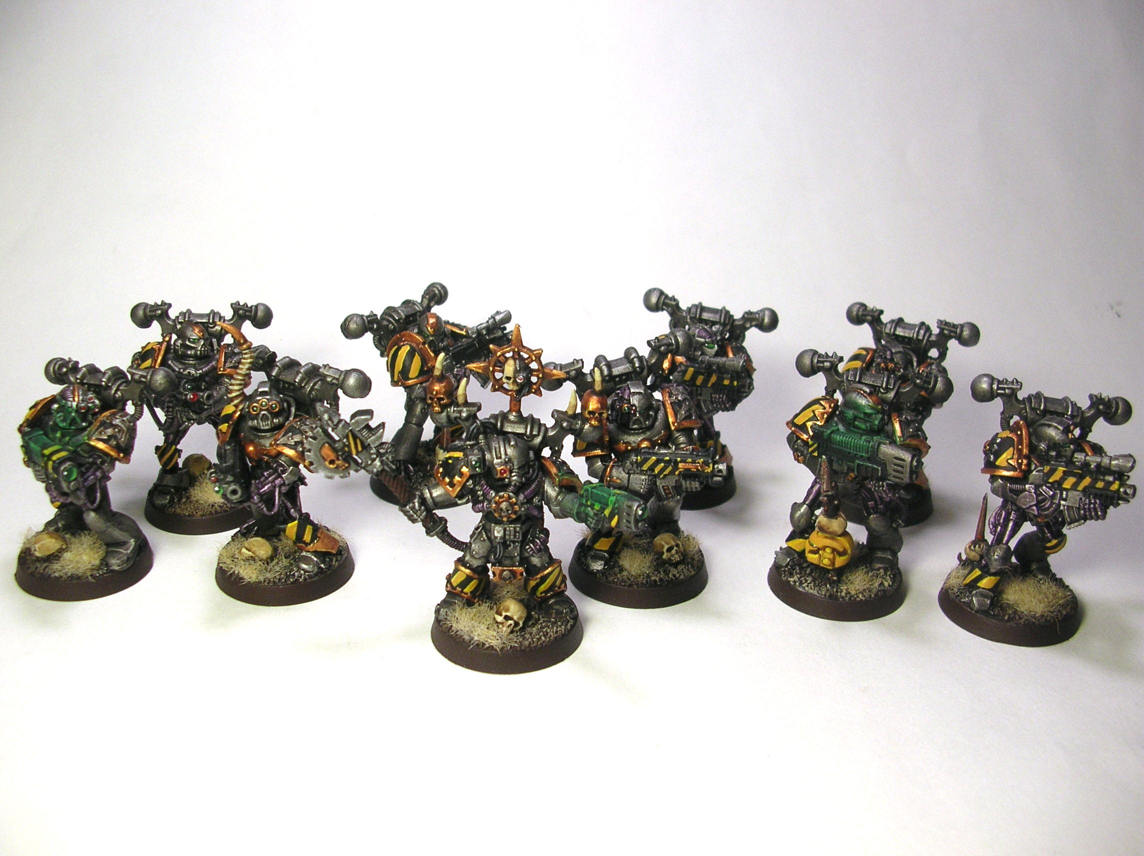 Greg: Yeah, they’re every metal band that started with 4 members and just kept adding musicians until they had like 13 people on stage just making an awful racket, only with these dudes dousing the crowd in phosphex is a deliberate part of the act. Doing drugs and getting weird is extremely cool, and the only surprising thing about them falling to Chaos is that their patron god could just as easily have been Nurgle instead of Slaanesh, with the way these guys like to party.